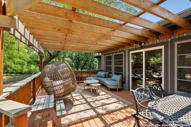 Meticulously maintained Mid-Century Modern gem! This beautifully cared-for one-story home features a spacious primary suite thoughtfully separated from the secondary bedrooms for added privacy. Floor-to-ceiling windows flood the master bedroom. Incredible natural light, highlighting the rich wood flooring and ceramic tile in the kitchen. The kitchen and living areas are the heart of the home, featuring updated cabinetry and views to a the backyard filled with mature trees. Step outside onto the recently re-stained deck - the perfect outdoor living space for relaxing or entertaining. The spacious laundry room provides additional storage and is a unique feature. The secondary bedrooms, located in their own private wing, share a stylishly updated bathroom. Every detail of this home has been lovingly maintained, making it truly move-in ready. An additional highlight is the charming back house - ideal for a private guest retreat, home office, or creative studio. All of this is perfectly located near some of the city's best dining, parks, and amenities, offering both convenience and a peaceful neighborhood feel. Don't miss your chance to own this one of a kind property!