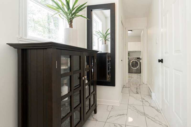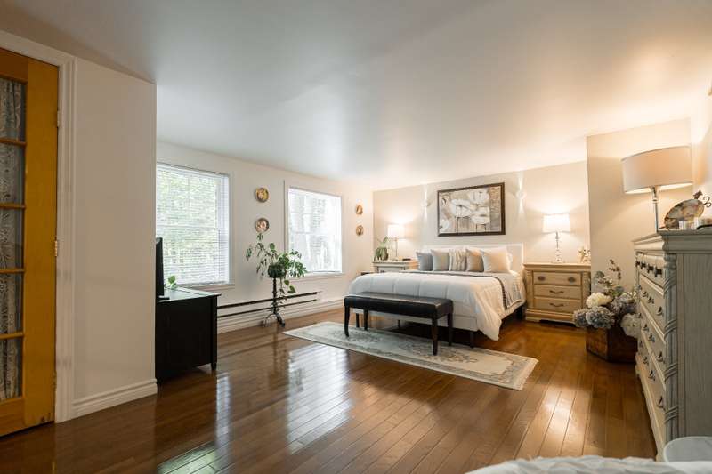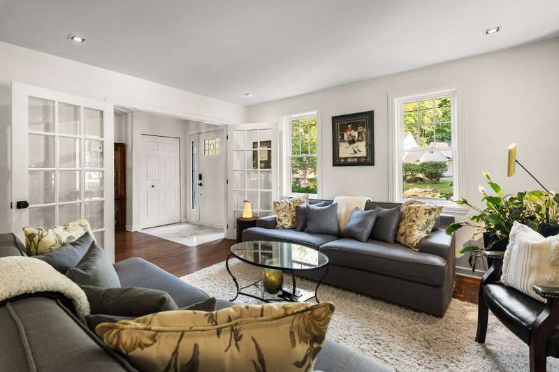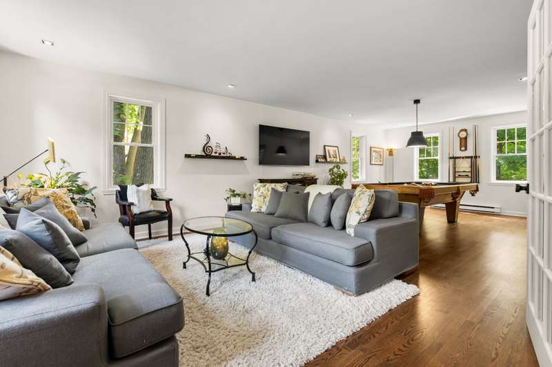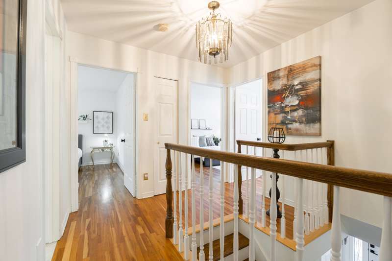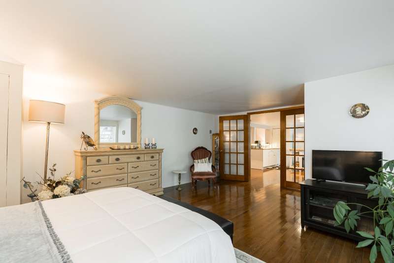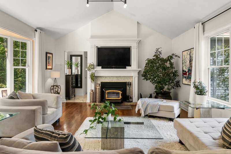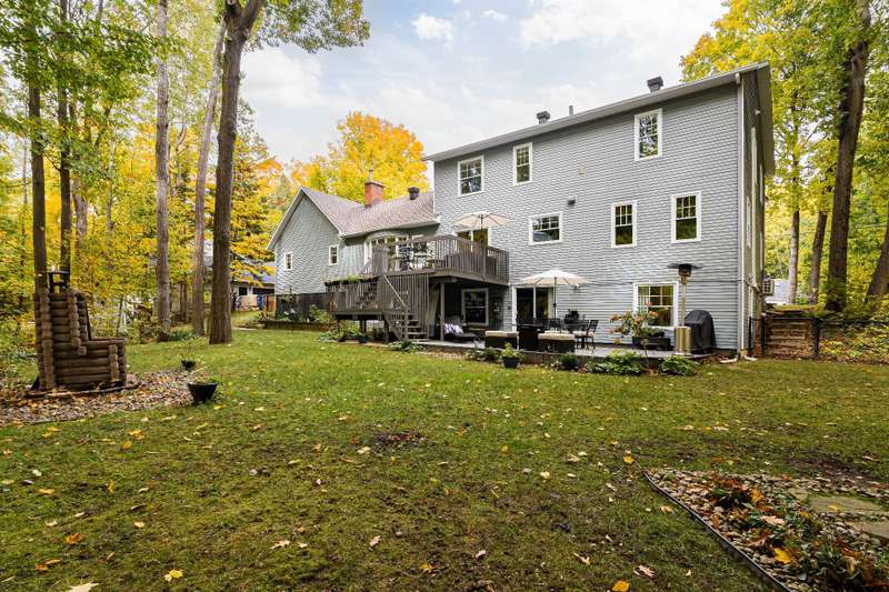 Welcome to this spacious 4-bedroom home on sought-after Woodcroft, ideally situated on the backside with no rear neighbours and backing onto tranquil green space for maximum privacy. The massive primary impresses with an en-suite bath and 2 closets, one of which is a walk-in. Tasteful updates include a stunning new kitchen, flooring, 28 new windows and custom patio doors. The bright walk-out basement offers a full in-law suite with oversized bedroom, living room, kitchen, luxurious bath with laundry, and private patio. Enjoy a double-level deck, expansive backyard oasis, 2-car garage, and a short walk to Mt. Pleasant School and the Village.
