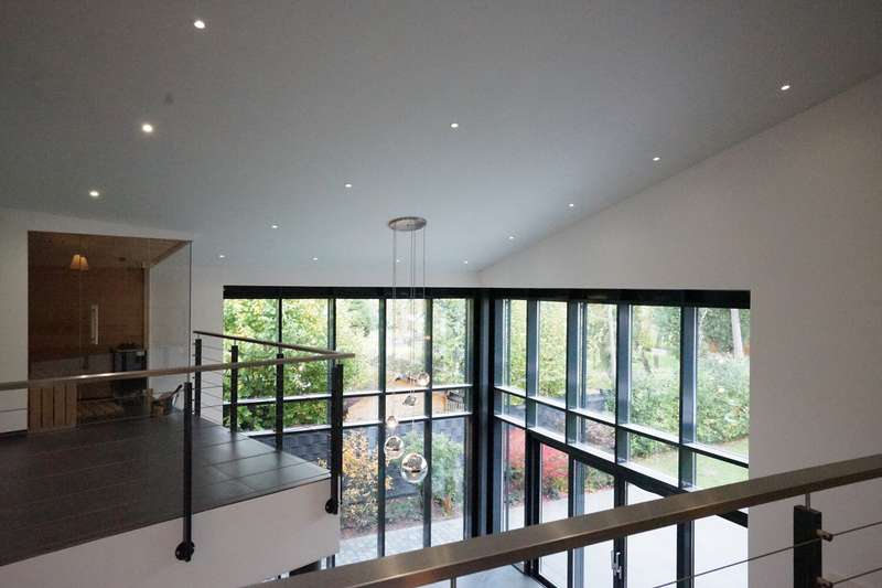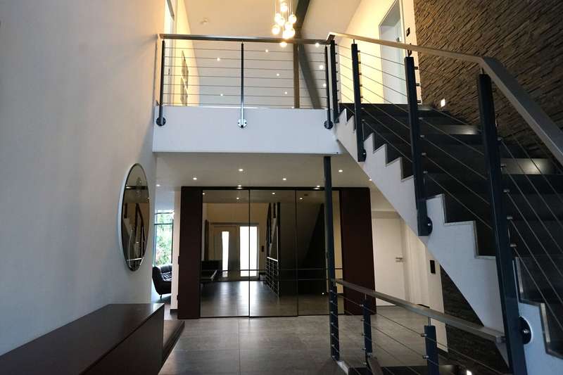 This modern urban villa from 2020 impresses with its spaciousness, stylish architecture and high-quality fittings. With a living space of approx. 351 m² spread over two levels, the house offers maximum space for various living concepts and contemporary requirements. The house is situated on a plot of approx. 983 m². The garden was laid out according to a professional planting concept and offers a dynamic play of green and red colors all year round with a variety of different plants. This private refuge, which extends in front of the floor-to-ceiling glass front, creates a soothing, natural atmosphere and harmoniously connects the inside of the house with the outside world. The electric external blinds ensure complete privacy and light regulation. The representative entrance area opens up on the first floor, which conveys an immediate feeling of spaciousness thanks to its expansiveness and brightness. From here, you enter the spacious and open-plan living and dining area, which is flooded with light thanks to floor-to-ceiling window fronts over two floors. Large-format Italian designer tiles, an open ceiling design with several galleries and many functional details characterize the special ambience of the house. The impressive, open kitchen from Joppe adjoins the living area and is equipped with high-quality built-in appliances, generous work surfaces and plenty of storage space - a central meeting point for the whole family. Direct access to the garage also makes unloading the shopping a breeze. Two guest or children's bedrooms and a bathroom with shower are also located on this level, which further enhances living comfort. The upper floor can be reached via the impressive designer staircase with high-quality slate wall cladding and was designed as a private retreat. Here you will find the master bedroom with a directly adjoining, luxurious en-suite bathroom with a free-standing bathtub and walk-in shower. A special highlight is the glass sauna with a view of the greenery - your personal wellness area. A spacious, fully equipped dressing room and an open gallery, which serves as a stylish home office with panoramic views, round off this floor. Another highlight is the very spacious, approx. 250 m² basement. In addition to a fitness area, a home cinema, another high-quality bathroom with a walk-in shower, plenty of storage space and room for hobbies, this is where the building services are located. The house is heated with a modern air heat pump and has a highly efficient photovoltaic system (30 kWp). The underfloor heating and lighting throughout the house are controlled by a centrally networked control system. I would be happy to arrange an individual viewing appointment with you.