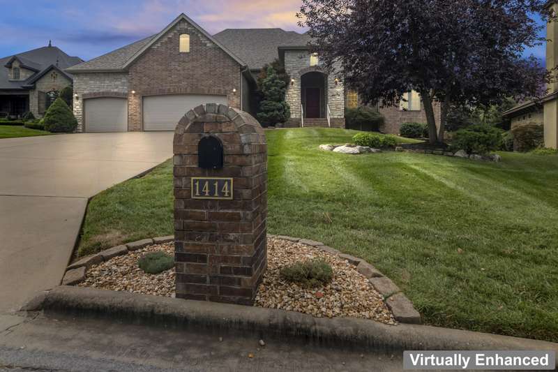 1414 Wilder Dr. Springfield, MO. Come see this beautiful well cared for, move in ready, all brick home in the great neighborhood of Eaglesgate, in South Springfield! This amazing home has so much to offer with almost 3700 square feet to love and over 3,200 of the square feet being on the primary level! The main floor of this home features a formal dining room, an office (or bedroom) large living room, plus a see through gas fireplace into the hearth room and gorgeous kitchen with custom cabinets with an island and granite counters. The kitchen also features a double oven, convection oven, warming drawer and lots of space for all of your cooking and baking needs!The primary suite is also incredible, being large enough for its own sitting area with a gas fireplace and large on suite with walk in shower, large tub and walk in closet. On the other side of the house are 2 more bedrooms plus a full bathroom. The laundry room is also on the main floor as well as another half bath. Upstairs is a large bonus room that could be another living area or a 5th bedroom or whatever you would like for it to be because it is 431 square feet of bonus space to love!Out back there is a covered patio overlooking the pretty backyard and the back is fenced in as well. Plus the whole yard front and back have a sprinkling system for watering.The home also is dual zoned for heat and a/c plus the bonus room has its own mini split unit. New roof in 2020 and new water heater in 2025! The neighborhood amenities include, clubhouse, pool, tennis court, common area maintenance and trash. The schools are Disney, Cherokee & Kickapoo. Do yourself a favor and come see this beautifully well cared for home today!