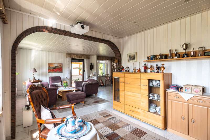 For sale is a modernized detached house built in 1969, situated on a spacious plot of around 721 m². With a living area of approx. 140 m² and an additional usable area of approx. 129 m², this property offers plenty of space for a comfortable lifestyle. The house comprises a total of four rooms. The room layout is functional and well thought out. The first floor is complemented by a light-flooded conservatory, which invites you to linger and at the same time creates a harmonious transition between indoor and outdoor areas. The garden itself offers plenty of space and is ideal for garden lovers or as a play area for children. A particularly practical feature is the building's full basement, which not only creates additional storage space, but also offers flexibility for hobbies and leisure activities. The bathroom, which was modernized in 2019, boasts contemporary fittings. There is also a shower on the upper floor. A separate guest WC ensures that the comfort of visitors is not neglected either. For car owners, the property offers two garages that provide secure storage for cars in winter and summer. The central heating, which provides pleasant warmth, underlines the sophisticated technical features of the house. The location of the property in a mature residential area offers a good infrastructure and ensures quick access to shopping facilities, schools and public transport. This makes the house suitable for both families and couples looking for a place to develop. Overall, this modernized property represents an interesting opportunity for buyers looking for a house with a spacious plot and flexible room concept. If you are interested in a viewing, we look forward to hearing from you to arrange a personal appointment.
