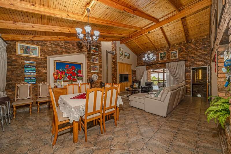 Sophisticated 6-Bedroom Residence with Panoramic Views, Exceptional?á Spaces and Full back up solar system. Step into a world of refined elegance and effortless luxury in this remarkable 6-bedroom, 3.5-bathroom home designed for upscale living and grand entertaining. Perfectly positioned to capture uninterrupted views of the surrounding landscape, this property combines architectural excellence with functional beauty, offering generous space for the modern family. Living & Entertaining Spaces At the heart of the home lies an expansive open-plan living area, anchored by a feature fireplace and big windows that invite in natural light and showcase the breathtaking views. The lounge flows into a large dining area, ideal for hosting elegant dinner parties. Adjacent, the gourmet kitchen is outfitted with premium appliances, sleek cabinetry, and a scullery?Çöblending gourmet capability with social connection. For more relaxed gatherings, a separate family lounge opens directly to the outdoor entertainment space. This covered area boasts a built-in braai, jacuzzi and views that make every event feel like a luxury retreat. Bedrooms The master suite is a sanctuary of space and tranquility, complete with stunning view, walk-in dressing room, and a luxurious en-suite bathroom featuring a deep soaking tub, double vanity, and shower. Five additional bedrooms are generously sized, each with large windows, ample built-in cupboards and beautifully appointed finishes?Çöperfect for family members, guests, or even home office use. Additional Features This home is equipped with a robust solar backup power system?áfeaturing 24 high-efficiency solar panels?ápaired with 12 long-life gel batteries, ensuring a reliable, eco-conscious energy solution. Jojo tanks for back up water supply. Plus staff accommodation This home effortlessly combines scale, style, and substance. Whether you?ÇÖre hosting large-scale celebrations, enjoying quiet evenings with family, or seeking a private sanctuary with unbeatable views, this property delivers on every front. Don?ÇÖt miss the opportunity to own this rare gem?Çöschedule your private viewing today.
