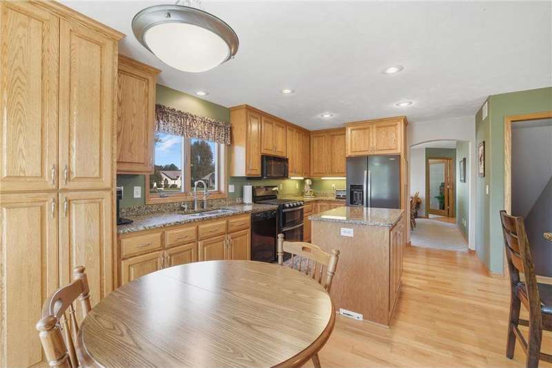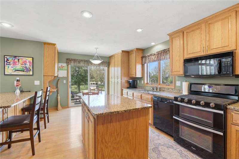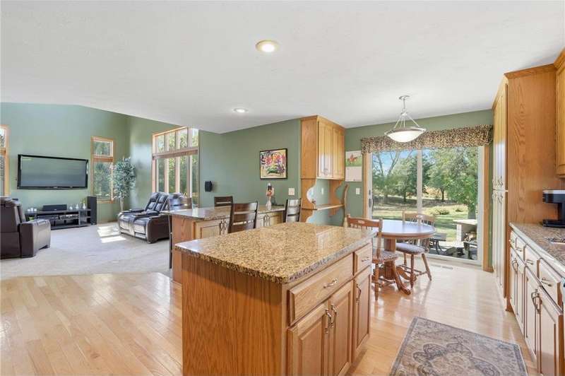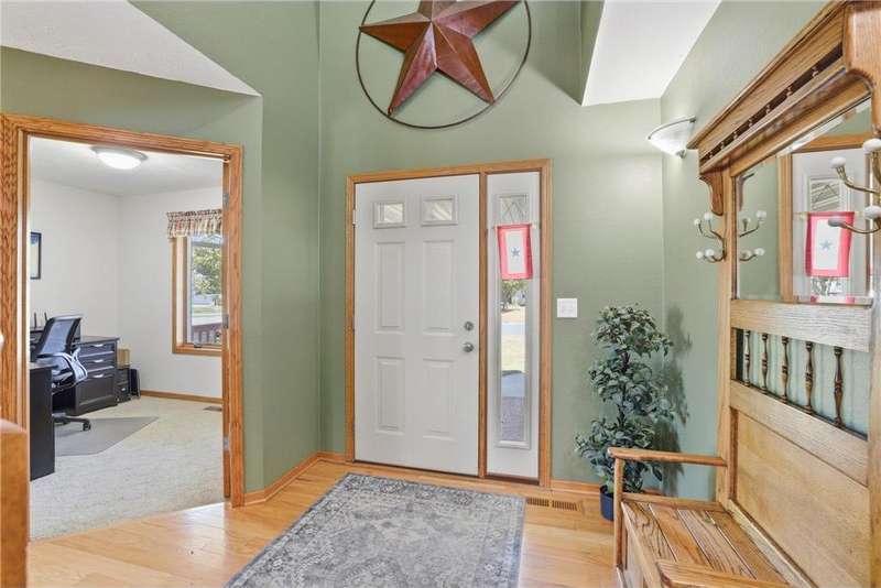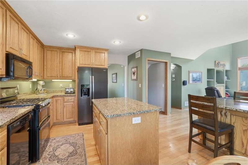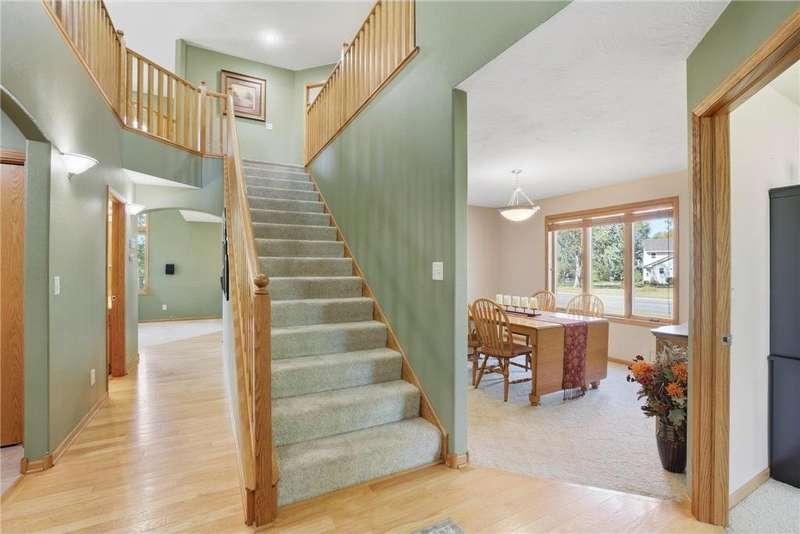 Beautiful custom 2-story home on the edge of town in a great neighborhood with country views and no backyard neighbors! Nearly 3,400 sq ft of finished living space featuring hardwood floors, soaring ceilings, granite kitchen with island and breakfast bar, formal dining, office, massive mudroom, 3 upper-level bedrooms, primary bedroom suite with vaulted ceiling, finished lower level with wet bar and 4th bedroom. Enjoy coffee on the covered front porch, barbecuing and a fire on the backyard patio. An extra wide heated & finished 3-stall garage with built-in cabinets for all your storage needs. High-quality Andersen windows throughout and a new roof in 2022. Close to schools and walking trails. Rare opportunity to own a 2-story like this in Belle Plaine. Schedule a tour before it's gone!