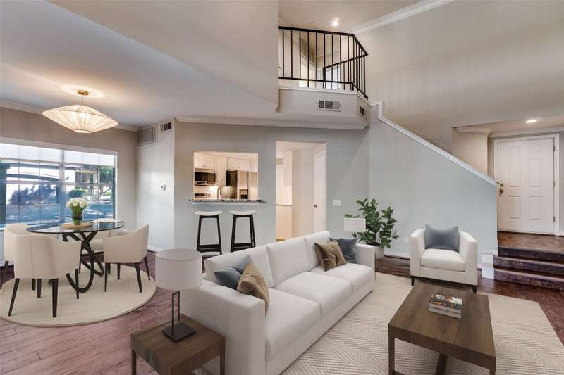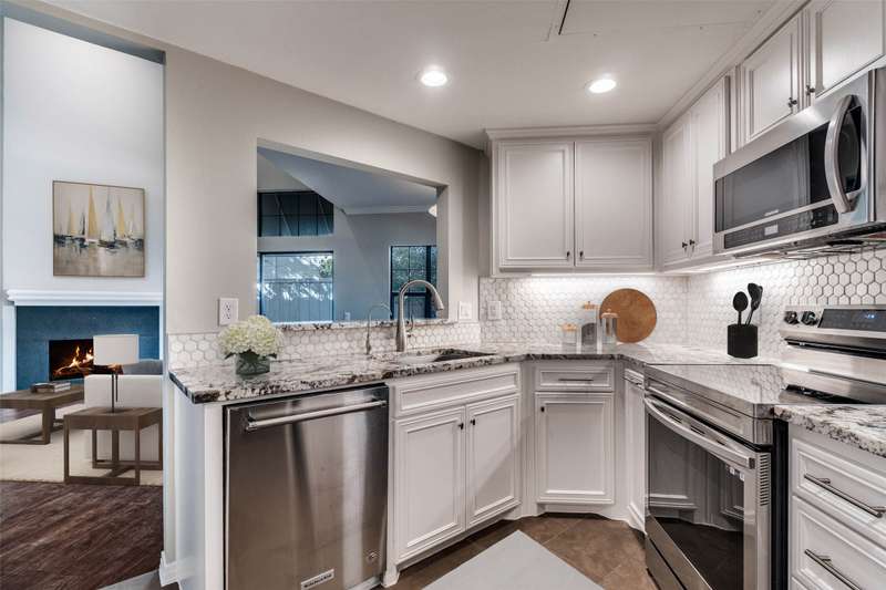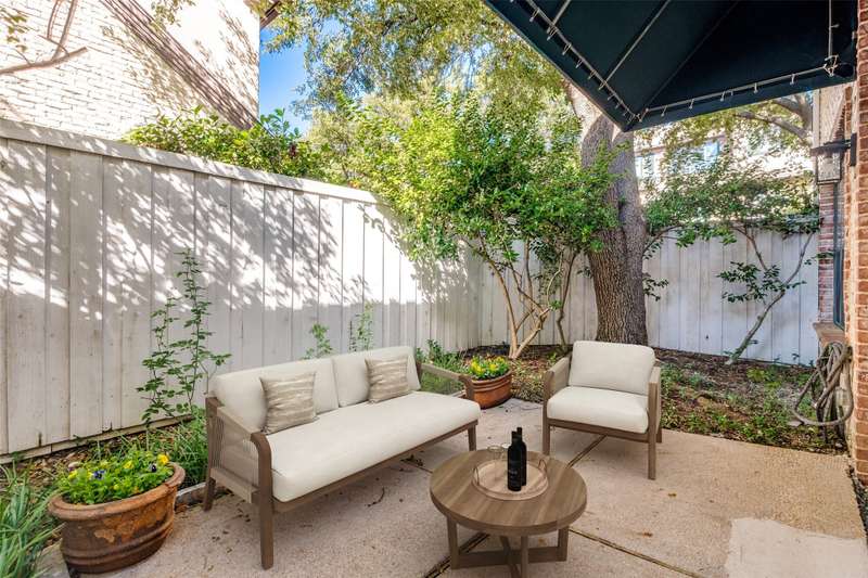 Nestled in an exclusive Preston Hollow neighborhood, The Lindenshire is an intimate 29-unit community offering the perfect blend of comfort, style, convenience in an unparalleled location. This beautifully updated two-bedroom, two-and-a-half-bath corner residence lives like a private townhome with natural light-filled interiors and thoughtful updates throughout. Inside, enjoy engineered hardwood floors, light neutral walls, an inviting wood-burning fireplace, and a spacious living area that opens to an inviting private patioperfect for entertaining family and friends. The living and breakfast area are open to the modern kitchen featuring a grey and white palette with stunning counters and backsplash, stainless steel appliances, and ample storage, combining both function and style. Upstairs, two generously sized bedrooms each offer ensuite updated baths, creating peaceful retreats. Enjoy the outdoors on the charming private patio. In addition to the updates, additional highlights include a new electrical panel, one new ac unit, reverse osmosis water filtration, a laundry conveniently located on the second floor, and a spacious two car garage. The primary suite features an electric Shade Store window treatment for added ease, style and privacy. Residents of The Lindenshire enjoy a sparkling community pool and a prime location within walking distance of premier shopping, dining, and the world-renowned Cooper Aerobics Center. With easy access to Preston Road, LBJ Freeway, and the Tollway, this home perfectly balances tranquility and city convenience.Bonus: Stainless steel refrigerator, freezer, washer, and dryer convey with an acceptable offer.Note: Photos are virtually staged.