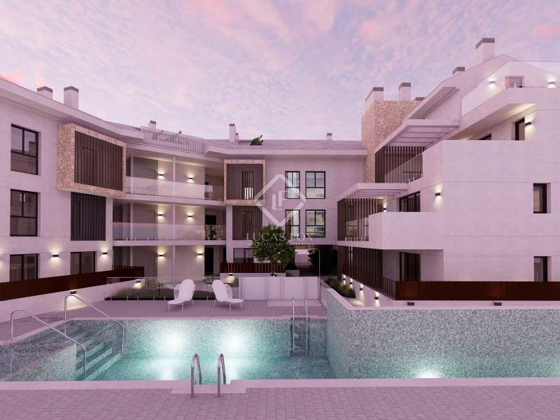 Introducing this new residential development with 17 exclusive homes with 2, 3, or 4 bedrooms, all equipped with terraces, garage, storage units, and bicycle parking. Located in a modern residential complex, the two three-storey blocks offer ground floor, first-floor, and duplex penthouse options, making it possible to enjoy the Spanish sunshine year-round. Choose from three different interior styles: Contemporary, Timeless, or Nature, all with high-quality finishes from Porcelanosa. Each kitchen is fully equipped with top-of-the-line appliances, including an induction cook top, microwave, electric oven, integrated dishwasher and refrigerator, and a decorative stainless steel extractor hood. Bathrooms are designed with premium porcelain stoneware, energy-saving taps, and resin shower bases, along with stylish wall-hung toilets and dual flush systems. The complex includes a range of common services, such as a communal garden, swimming pool (with a separate children's area), bike racks, and a parking garage with pre-installed electric car charging. Additionally, all homes feature air conditioning (hot/cold) in all bedrooms and lounges, underfloor heating, and an aerothermal heat pump for efficient hot water and heating. Completion of construction is expected by the end of 2027, with work beginning in June 2025. Please contact us about this opportunity to own a high-quality home in an exceptional location.
