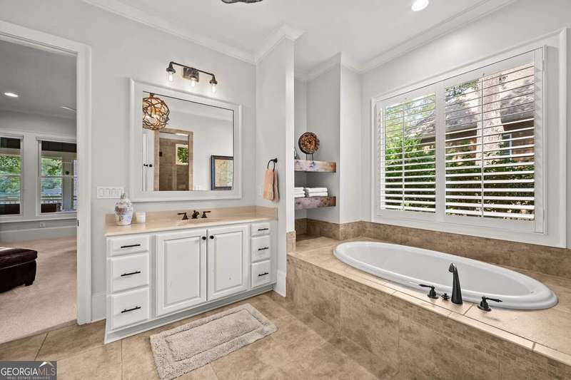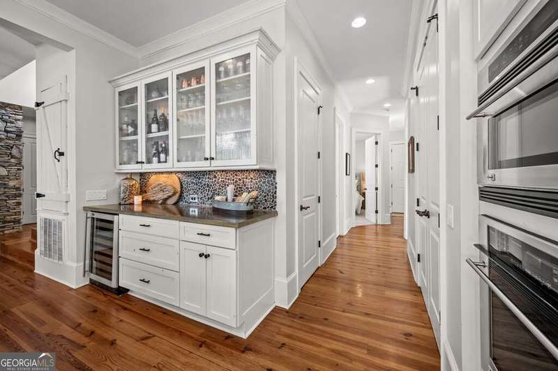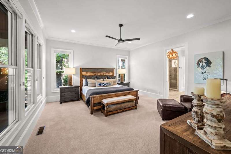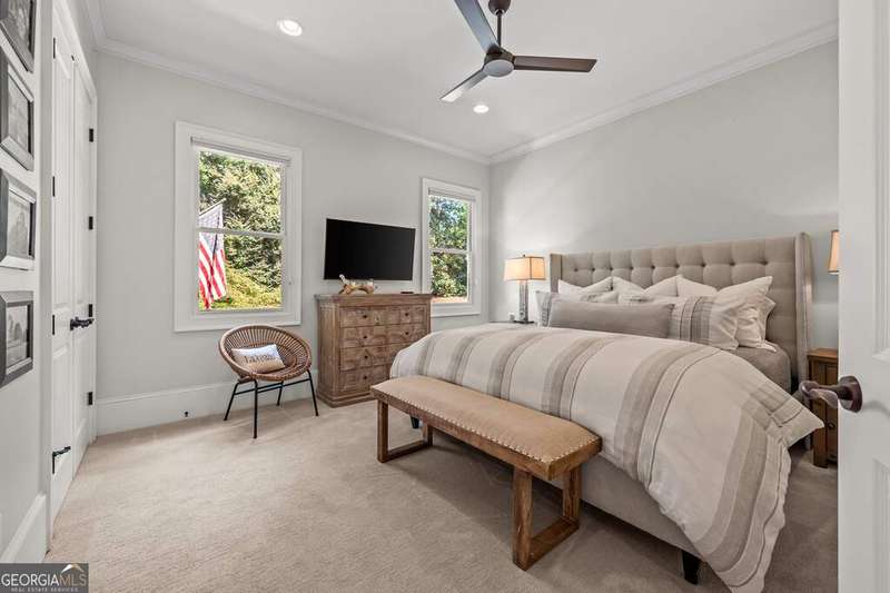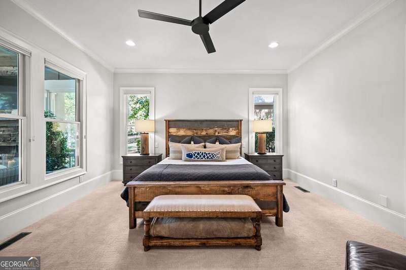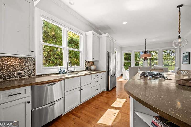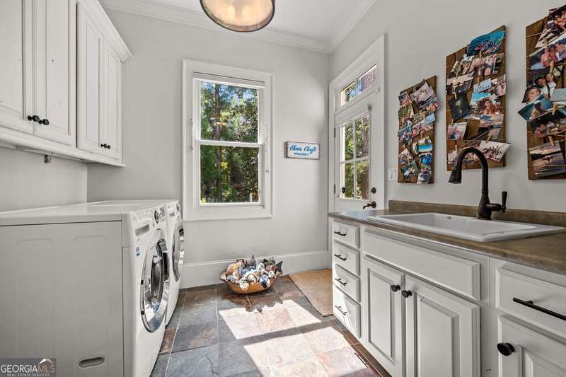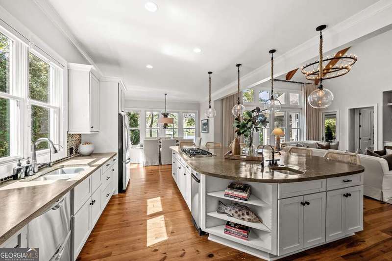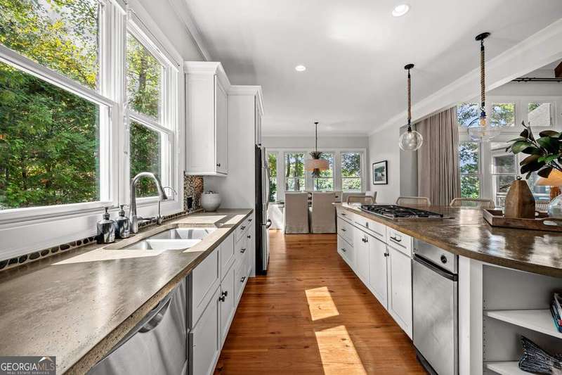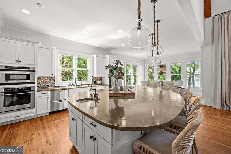 If you're looking for Lake Oconee living set on a quiet cove with max dock and a flat, landscaped backyard, then this 5 bedroom, 4.5 bathroom lake front property in the Emerald Shores neighborhood is ready for you! This DreamBuilt home features an open floor plan with a two-story great room and stone fireplace, kitchen featuring stainless steel appliances and oversized island that accommodates 6+ guests, dining space that accommodates 8+ guests, all with lake views and perfect for entertaining! Additional entertaining space is located on the screened in porch featuring a wood-burning fireplace and hot tub. Primary suite, guest room with ensuite bathroom, powder room, and utility room on the first floor allow for one floor living. The second floor features the third ensuite bedroom and a fourth bedroom with quick access to the hallway bathroom. The current owner uses the fifth bedroom as combined bunk room plus sitting area - this flexible space also can be used as a game room or office space. Additional features include recently refurbished max dock, two electric personal watercraft lifts, 7,000lb hydraulic boat lift, yard irrigation system, exterior light and hard scaping, firepit, 25' commercial flag pole, new dual electric hot water heaters, water softener and purification systems, central vacuum, interior remote start propane fire place, 10-feet ceiling on main floor, two car garage, car charging outlet, guest parking, and more! Home is located a short boat ride away from the planned Hideaway, Ritz Carlton, Jumping Rock, Birch restaurant, among other Lake Oconee points of interest!! For a truly turnkey vacation home experience, Seller is offering select furniture, boat, and personal watercraft by way of a separate bill of sale.