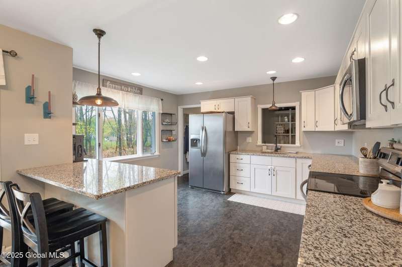 BEST AND FINAL FRIDAY 5/9 AT 10AM Welcome to this 3 BR, 2.5 BA ranch on 1.18 acres in Burnt Hills school district. This home offers many updates including a new kitchen with granite counter tops, all newer stainless steel appliances, hardwood floors, wrap around porch with sliding glass doors in the kitchen and primary suite. A living room and den for multiuse. All bathrooms are updated with the full bathrooms offering new double vanities, all new flooring and lighting. Updated laundry room with new lighting and flooring. New generator, shed and much more! This home has plenty of space to entertain inside and out in a beautiful neighborhood. A MUST see!