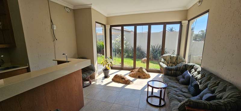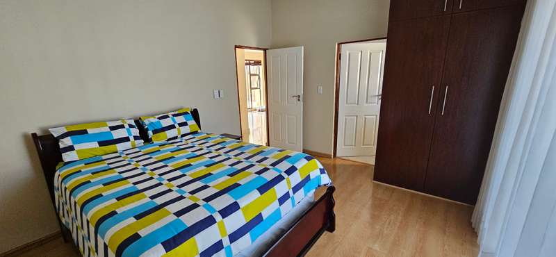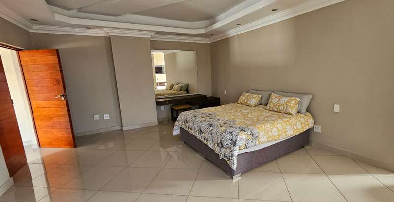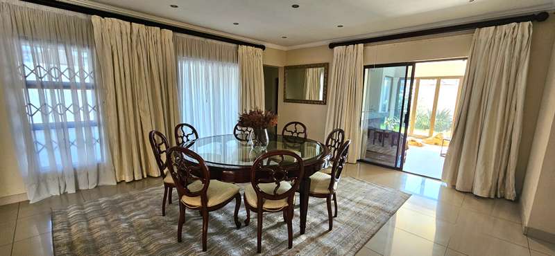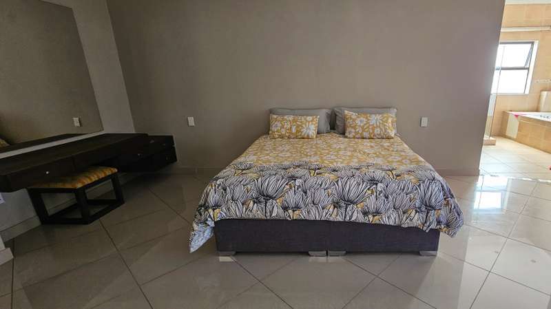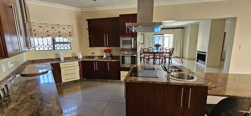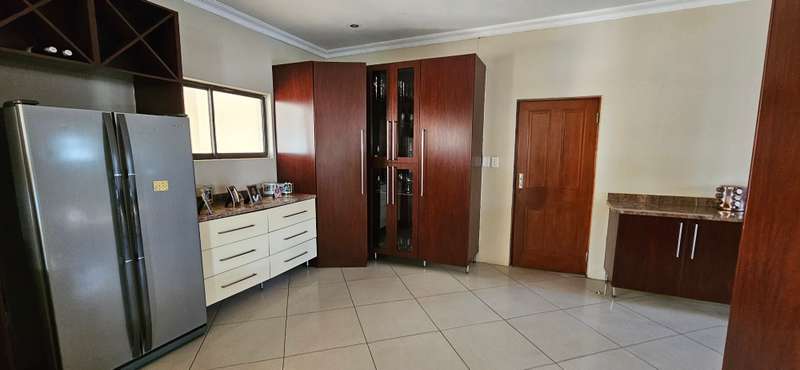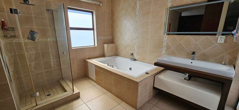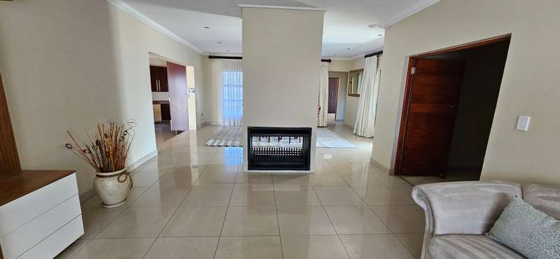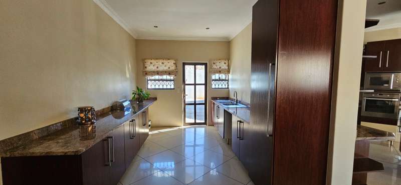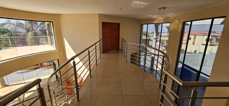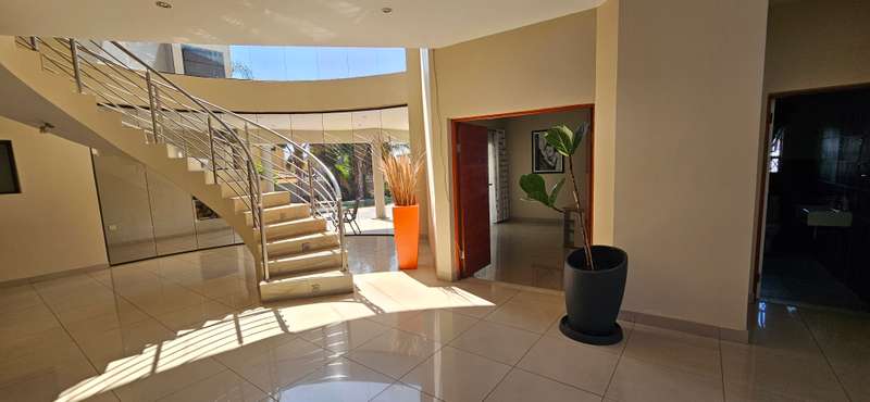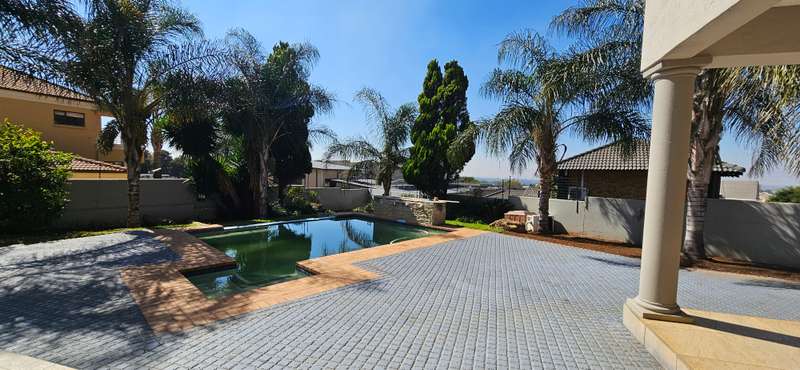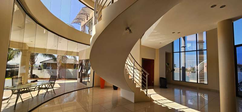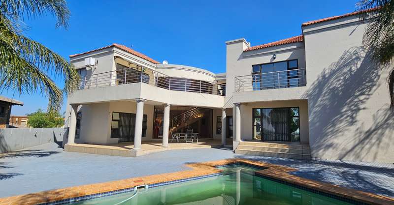 Enter this home through the grand foyer with a staircase leading up to the main bedroom with a large walk-in closet and en-suite bathroom with a spa bath, 4 more bedrooms with en-suite bathrooms and balconies offering spectacular views of Meyersdal, a pajama lounge, playroom, linen room and a study/office for work from home. Downstairs boasts a large kitchen with a separate scullery and ample cupboard space. The formal lounge and dining room has a fireplace, the family lounge is well sized and there is a cinema room and a bar for entertaining family and friends. Another bedroom with en-suite bathroom downstairs is an added luxury for guests. The patio has a built in braai and overlooks the pool. This massive home is complete with 4 garages and staff quarters. A well secured property with CCTV and armed response. Situated close to all amenities and easy access to all major roads and highways...