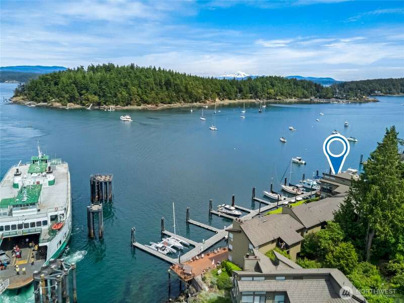 Penthouse condo with a private elevator with 180-degree views of the harbor, marina, and spectacular sunrises, two decks offer unobstructed views of wildlife and boating activities, as well as front-row seats for the 4th of July fireworks. A short walk to the ferries and a few steps more to shop in the quaint town of Friday Harbor. Both bathrooms have heated floors. Furniture negotiable. There is ample storage, including a loft area and one covered parking space. This one-of-a-kind condo has a private elevator. Chicago T&E #245469475