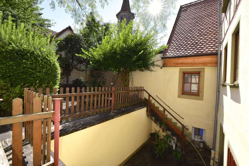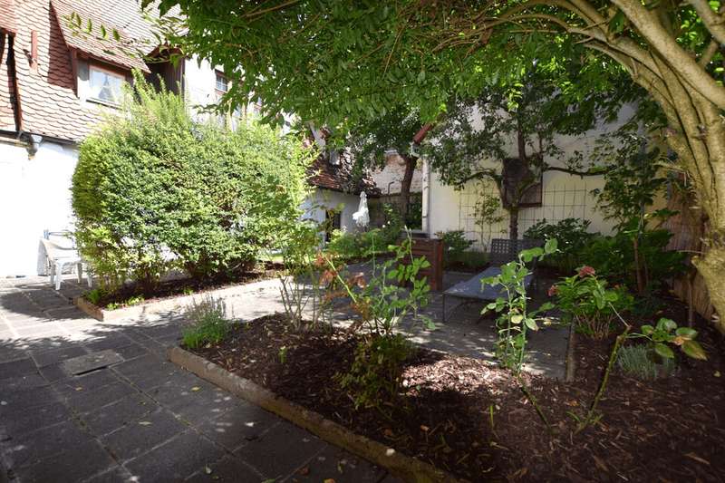 Located in the heart of the historic old town, this listed gem dating from around 1600 is just 100 meters from the picturesque Plönlein and a few minutes from the vibrant city center. The property combines historical charm with modern living comfort: it offers a total of 198 m² of living space on a well-kept plot of 270 m² and comprises three modern, light-flooded apartments with well thought-out floor plans. A special highlight is the lovingly tended garden with courtyard, which is available to all tenants for shared use. Renovations and modernizations were carried out in several stages: in 2007, the front of the house was given new windows and the stairwell was also repainted, in 2008 the 1st and 2nd floors were fitted with a new gas boiler, a renovated bathroom on the 2nd floor, new floors on both upper floors, doors and walls on the 1st floor and a new garage door was installed. In 2009, an apartment was added on the first floor and the gas boiler was replaced. In 2019, the front of the house was redesigned and the renovation of the top floor was completed in 2024. The details of the individual apartments offer a wide range of possibilities: On the first floor, there is a 1-bedroom apartment with an open-plan living, dining and sleeping area, a small kitchen and a spacious bathroom. On the second floor, there is a 4-room apartment with 83 m² of living space: two bedrooms, a bright, cozy living room and an adjoining office to the living room as well as a modern, well-maintained fitted kitchen. On the second floor is a 3-room apartment with a spacious living room, a small, functional fitted kitchen, a large bedroom and a bright, large study. The ensemble offers urban living comfort in a historic atmosphere and is ideal for families, couples with work requirements or flat-sharing communities who appreciate the proximity to the city center.