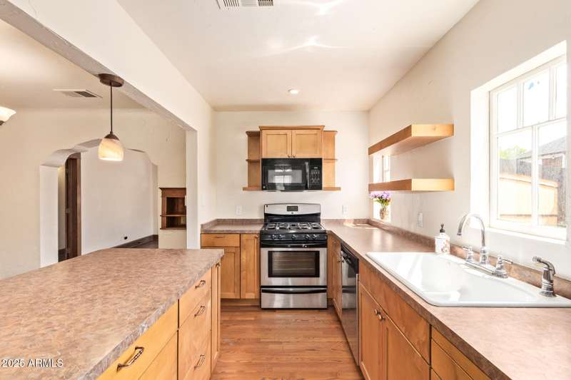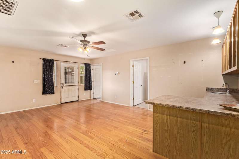 Own a delightful property in the Historic Coronado District, steps away from Coronado Park! This beautifully crafted home showcases a charming façade with a tastefully designed front yard for low-maintenance. The interior boasts a bright living room w/a fireplace, wood flooring, and a cozy family room. The eat-in kitchen features recessed lighting, abundant storage, ample counters, SS appliances, and a peninsula w/breakfast bar. The primary bedroom is HUGE & has outdoor access. Out the back, you'll find a detached casita, perfect for an office, guest quarters or entertaining, with an open living area, a kitchenette, and a bathroom. This unique property is surrounded by restaurants & shops, near public transportation, and minutes from Downtown.