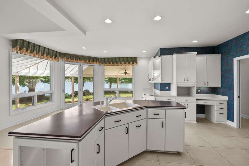 Lakefront luxury on vince Island at beautiful Goguac Lake. Tranquil private island feel minutes away from the city and major highway. The stunning six bedroom six bath home boasts 400 feet of prime lake, frontage, and panoramic views. The grand foyer features dual staircase, framing, a formal living room with a fireplace and lake view, the main floor offers a spacious concept, kitchen and family room with hardwood floors. There is also a butler's kitchen, a formal dining room and main floor laundry with a sink and lots of storage space throughout the house. Two bedrooms, including a primary suite with a whirlpool tub ,walk-in shower and walk-in closet with laundry hook up, complete the main floor. Upstairs are four more bedrooms, three baths and a theater/rec room with a fireplace that walks out onto a balcony with majestic views overlooking the lake. A covered patio leading out to a beautiful backyard, that has fascinating views of both sunrises and sunsets , completes a heaven on earth feel.
