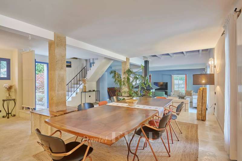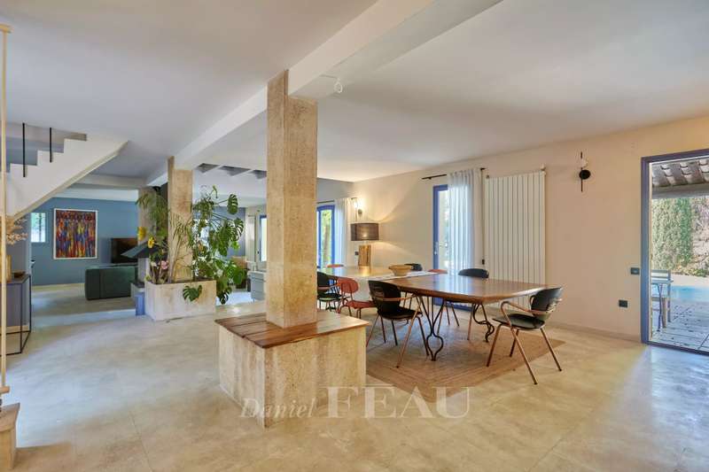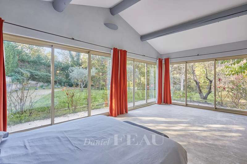 This peaceful 220 sqm property with a 50 sqm annex is in peaceful countryside just 5 minutes from a village with amenities, and 20 minutes north of Aix en Provence and Lourmarin. Set in 1 hectare of leafy grounds enjoying a view of the hillsides and benefiting from terraces and an overflow swimming pool, it includes a 90 sqm living/reception room with a fireplace, a kitchen, two bedrooms one with a bathroom, and a fitness room. Upstairs are a spacious master suite, a 4th bedroom and a shower room. The annex comprises two bedrooms and a shower room, as well as a convertible 30 sqm workshop. The enclosed grounds are planted with rose bushes, Cypress, green oak, olive plane and Japanese maple trees.