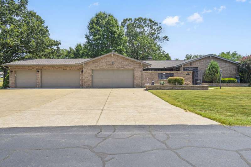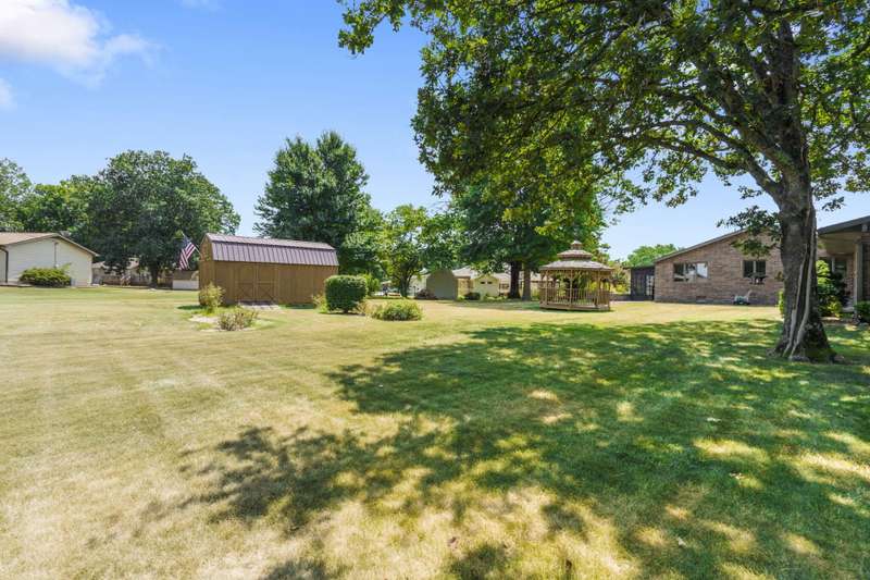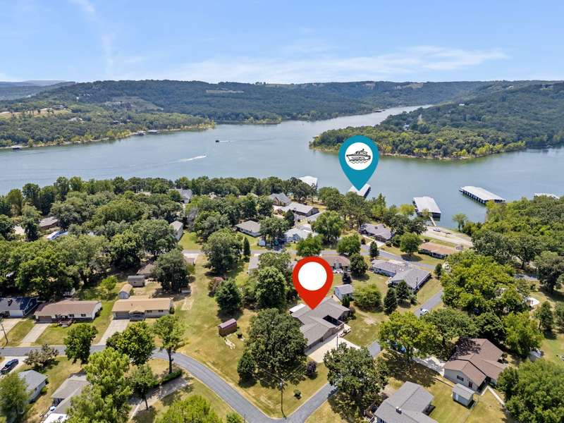 Charming home one block from Table Rock Lake with 5-Car garage and boat slip available.Welcome to this beautifully maintained 3BR/2.5BA single-level home nestled in sought-after Twin Island Estates. Situated on an oversized, flat corner lot This property offers both space and comfort with unique features. Car enthusiasts and hobbyists will love the rare 5-car attached garage offering ample room for vehicles, boats, or workshop space. Step inside to discover hardwood floors, custom built-ins, and a cozy wood-burning fireplace. A formal dining room and a separate formal living area, provide the perfect setting for entertaining guests or enjoying quiet evenings at home. The sunroom offers year-round enjoyment with serene views of the backyard, gazebo., and storage shed. Enjoy the lake lifestyle with a 12x28 boat slip just a couple of blocks away, available for $80,000perfect for easy access to Table Rock Lake. Association includes a clubhouse/community center with an inground pool, basketball court, shuffleboard, and Heli-pad. Close to Top of the Rock, Silver Dollar City and all Branson attractions.