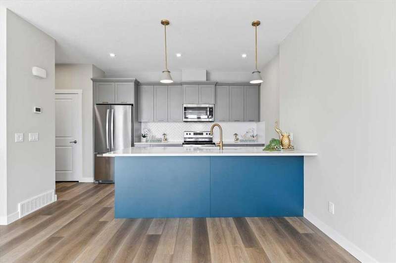 NO CONDO FEES! Discover this BRIGHT AND BEAUTIFUL MODERN 3-bedroom, 2.5-bathroom 4-plex with an OVERSIZED ATTACHED SINGLE GARAGE, located in the vibrant community of Seton. As you enter the main foyer, you'll immediately appreciate the meticulous upkeep of this home. The main level features an inviting OPEN FLOOR PLAN with 9 ft ceilings and durable LVP FLOORING throughout the main floor. The kitchen is a chef's dream, boasting a LARGE ISLAND with QUARTZ COUNTERTTOPS, STAINLESS STEEL APPLIANCES, and ample cupboard space. A convenient half bath and a closet-pantry complete this level. Upstairs, you'll find a SPACIOUS PRIMARY BEDROOM with a walk-in closet and a 3-PIECE ENSUITEBATHROOM. Two additional good-sized bedrooms provide plenty of room for family or guests, along with a 4-piece main bathroom and laundry. This SOUTH-FACING unit offers a generous balcony off the main level, perfect for BBQs, relaxation, or entertaining. Ideally situated just a short drive from South Health Campus, YMCA, JCS High School, Superstore, and a variety of shopping, dining, and business amenities. With easy access to Deerfoot and close proximity to Stoney Trail, your commute will be a breeze. DON'T MISS THE CHANCE TO MAKE THIS EXCEPTIONAL HOMEYOURS! Book your showing today!