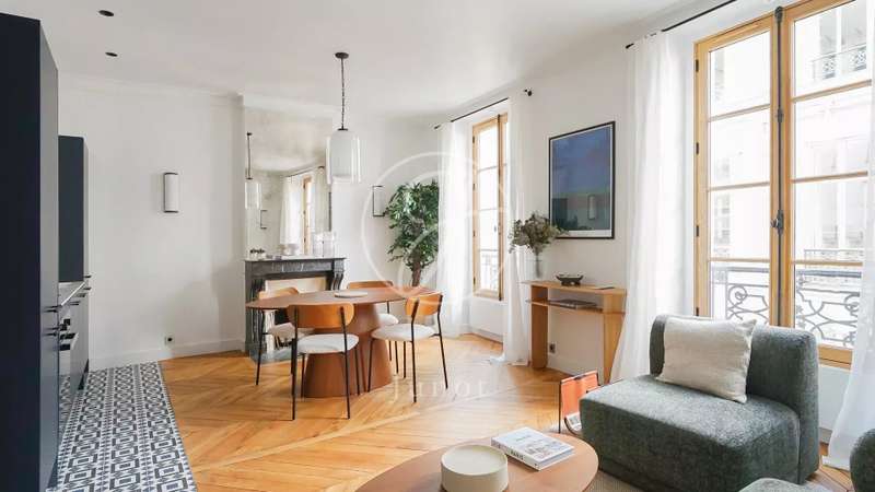 In the heart of Saint-Germain-des-Prés, rue des Saints-Pères, superb, tastefully renovated 57.05sqm apartment on the second floor of a beautiful old building. The apartment comprises an entrance hall, a bright living/dining room with herringbone parquet flooring overlooking the street, a fully-equipped open-plan kitchen, and a quiet bedroom opening onto a charming tree-lined courtyard, with en-suite shower room and toilet. A separate toilet is also accessible from the entrance. The apartment will seduce you with its spaciousness, luminosity, refined finishes and location in one of Paris' most sought-after districts.