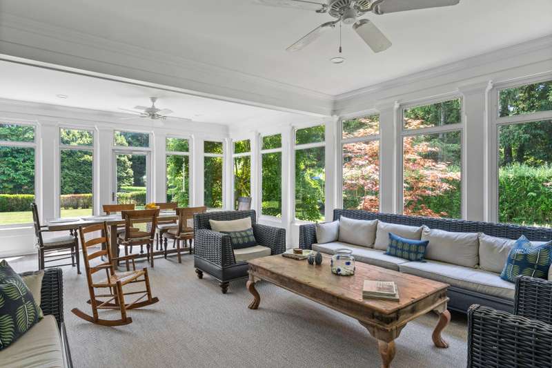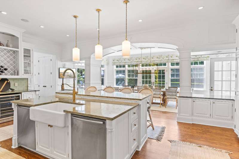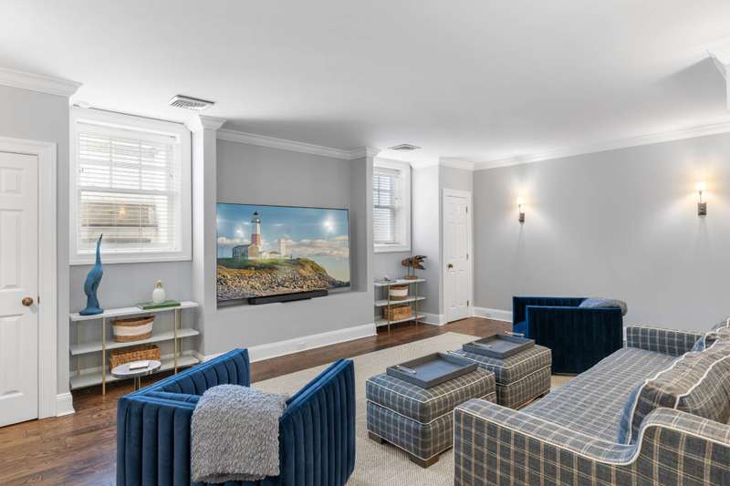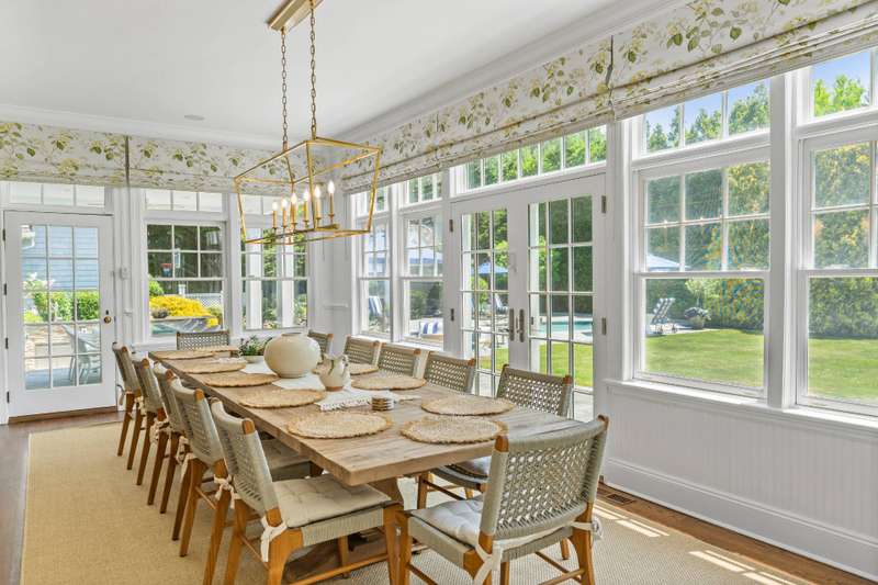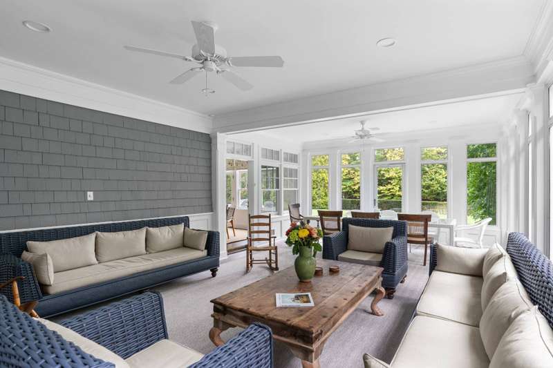 In the world class destination of the Hamptons is this classic gabled traditional on over 1.3 gorgeous acres in the coveted Georgica enclave of East Hampton Village offering a fortunate tenant a rare opportunity. Newly designer decorated, painted and floors done, this South of the highway jewel should not be overlooked. With elements of size and construction that could not be duplicated again on this parcel, a 7-bedroom, 8,000 SF+/-, residence, on 3 levels of finely articulated living space, down a long driveway, and sequestered behind a gated entry, brings the combination of masterful construction, exquisite finishes, copious amenities and a sensible floor plan that has become the hallmark of fine East End design. Newly refinished oak floors welcome all into a grand entrance that fans out to find the living room and formal dining room, both warmed by their own fireplaces. The expansive kitchen and family room is bolstered by an additional outdoor kitchen making both intimate meals and grand entertaining effortless. A three-season sunroom adds additional space to spread out and relax while enjoying views of the verdant property. Upstairs the primary wing with private balcony offers a large sleeping chamber with fireplace, luxurious bath and generous closets. Three additional ensuite bedrooms, including one with fireplace, and a sitting/TV room or office complete the second floor. The finished lower level offers gym, billiards lounge, media room, powder room and two additional bedrooms sharing a full bath. Outside major patios with ample room for couches, chairs and alfresco dining look out to the manicured lawn, pool with hot tub and cabana, while the sunken all weather tennis court is just beyond sheltered behind mature trees. Above the semi attached 2 car garage is a complete studio with full bath, perfect for the weekend overflow while a dedicated pool bath and laundry is built below. A professional half court invites all to practice their free throws at the end of an expanded parking court. Additional features include Sonos inside & out, public gas and water, security system, Wi-Fi with multiple boosters throughout, and irrigation. Extensive landscaping, specimen trees, colorful gardens and perimeter plantings have created an estate like setting only minutes to East Hampton Airport, Georgica Beach and East Hampton Village. This impeccable beauty should not be missed.