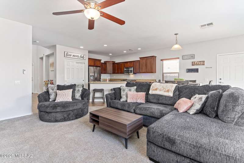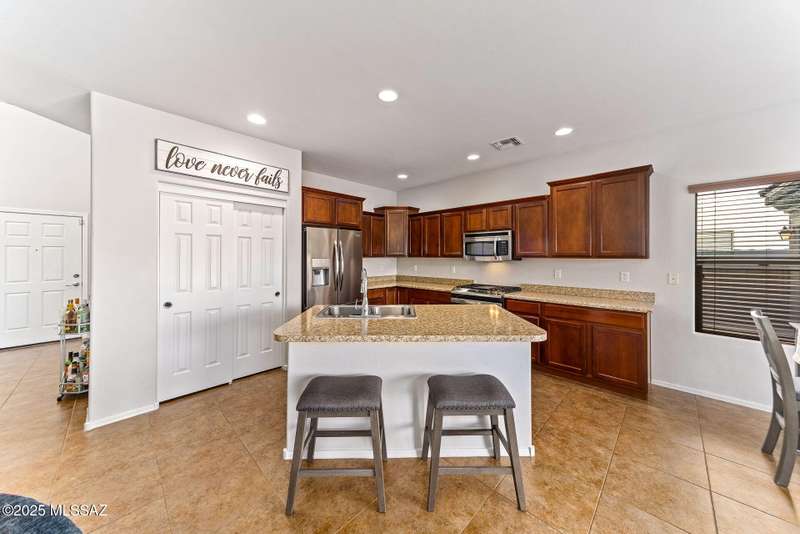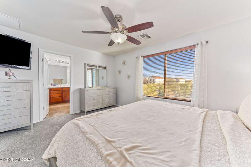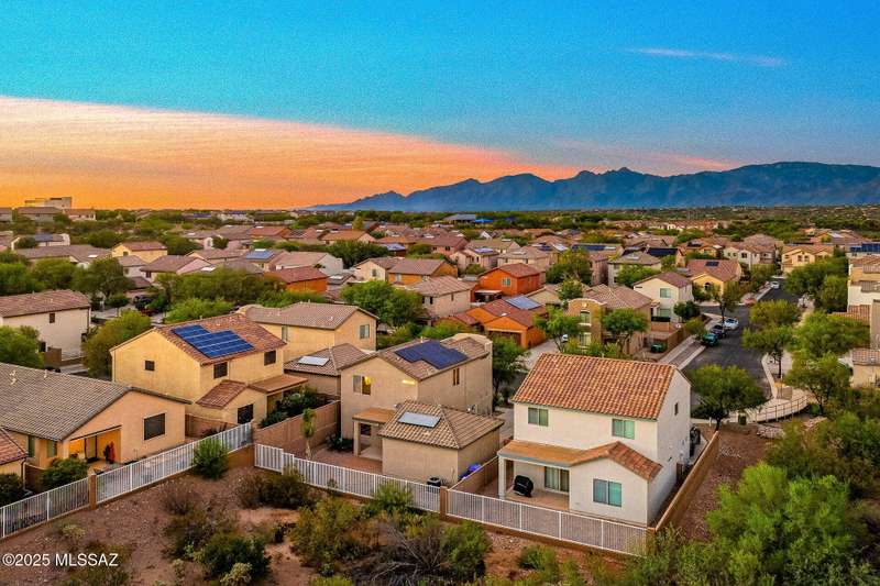 SOLAR LEASE WILL BE PAID IN FULL AT CLOSING with an acceptable offer. Discover this pristine 4 bedroom, 3 bath two-story home in the sought-after Sierra Morado community, located within one of Tucson's top-rated school districts. Designed with an open floor plan, the home offers comfortable living and easy entertaining. The kitchen flows into the living area, creating the perfect gathering space. Step outside to your covered patio and enjoy the privacy of no neighbors behind, just serene, open desert views. Extended driveway allow for plenty of parking. Energy-efficient solar panels keep utility costs low, adding value and peace of mind. Access to exceptional community amenities including a pool, clubhouse, playground, BBQ area, dog park, and prime location near schools, parks, and trails