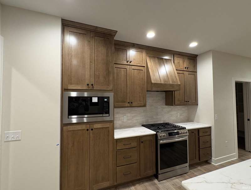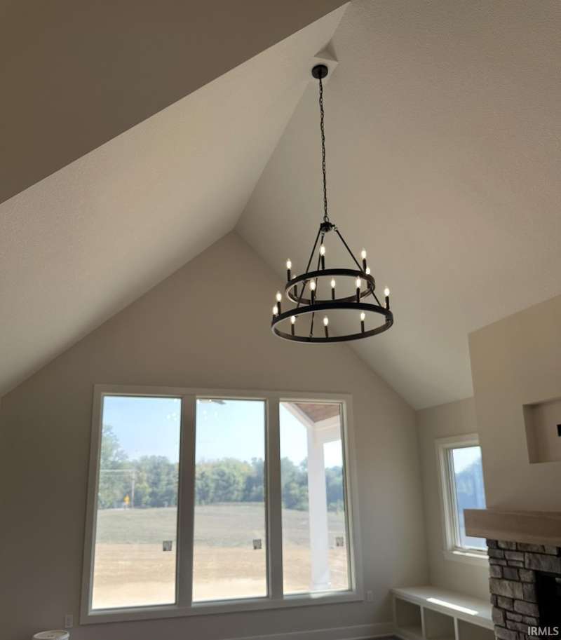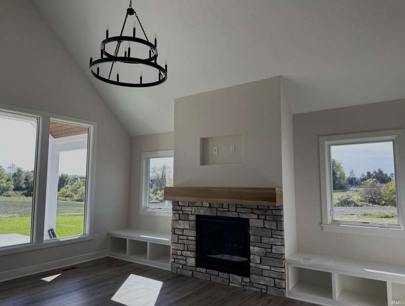 New Construction - Bob Buescher Homes is thrilled to introduce an exquisite two-story residence currently under construction in the highly sought-after community of The Pines, with an anticipated completion date o October 17th, 2025. This thoughtfully designed home showcases quality craftsmanship and modern features that elevate everyday living. As you enter the welcoming foyer, you'll find access to a versatile den/office space, perfect for work or study. The great room serves as a stunning focal point, featuring a soaring cathedral ceiling and a wall of elongated glass-pane windows that flood the space with natural light while offering breathtaking views. Anchored by a striking fireplace, the great room is enhanced by custom-built benches on either side, creating a cozy yet sophisticated atmosphere. At the heart of the home lies the custom-designed kitchen, boasting a generous 7’ x 5’ island, abundant storage options, and a pantry with a base cabinet ideal for a coffee bar. The primary bedroom, conveniently located on the main level behind the kitchen, ensures both privacy and tranquility. The luxurious en-suite bathroom is a retreat in itself, featuring a double vanity with quartz countertops, a linen cabinet, a private water closet, and a custom tile walk-in shower adorned with glass accents and a transom window for optimal lighting. The spacious 14’ deep walk-in closet adds to the appeal of this elegant suite. Ascending to the upper level, you'll discover a versatile bonus room, perfect for relaxation or family gatherings. This level also hosts three additional bedrooms and a full bathroom featuring a double vanity, making this home an ideal fit for families with a total of four bedrooms and 2.5 bathrooms. Moreover, direct attic access on the upper level simplifies storage solutions. Step outside to enjoy the covered porch and extended patio, perfect for outdoor entertaining or simply unwinding in the serene setting of your expansive .63-acre lot. The three-car garage offers 827 sq ft of space, with the third bay providing 25’ of depth. Additionally, our garages are equipped with drains, a standard feature of Bob Buescher Homes. The Pines community, located in Northwest Allen County, is conveniently adjacent to the PufferBelly Trail and offers easy access to shopping, dining, and Parkview Regional Medical Center. Don’t miss this incredible opportunity to make this stunning home yours! The annual HOA dues are currently $850 per year.