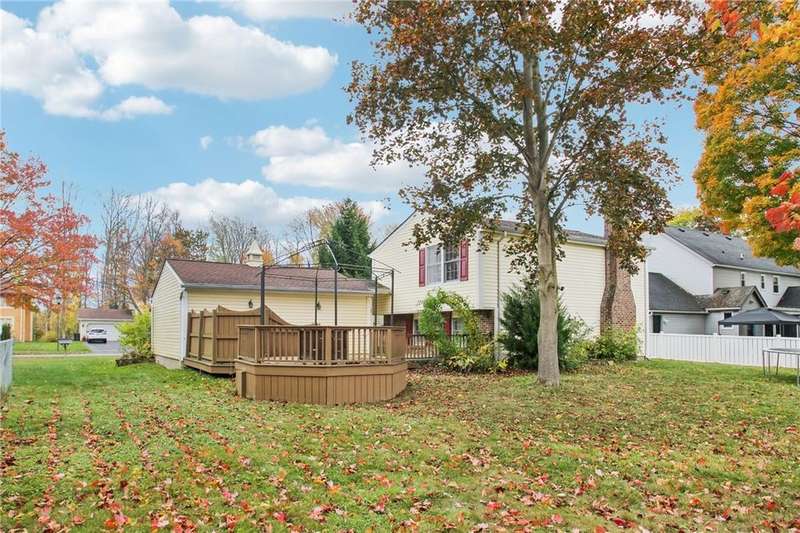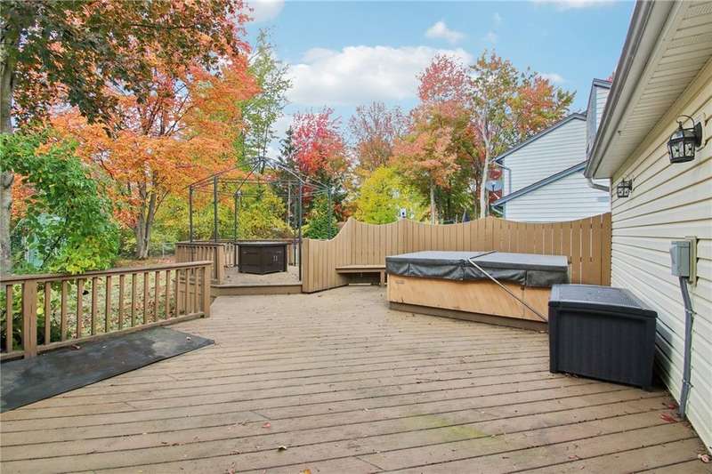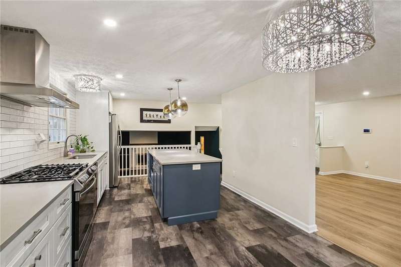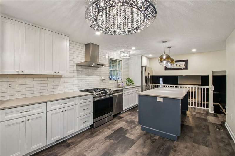 Welcome Home! This beautifully updated front-to-back split is loaded with stylish touches and modern upgrades. Step into the show-stopping remodeled kitchen featuring KraftMaid cabinets, textured subway tile backsplash, quartz countertops, a spacious island with bar stool seating, stainless steel appliances, recessed lighting, and designer light fixtures ? bling included!The main level boasts luxury vinyl plank flooring in the living room, kitchen, and dining areas, while the cozy family room features engineered bamboo flooring, a custom entertainment cabinet with granite top, and an updated half bath. Enjoy chilly evenings by the charming wood-burning fireplace (seller has never used ? no warranties implied).Convenient main-floor laundry comes with generous storage space. Upstairs you'll find 3 bedrooms with solid wood 6-panel doors. The primary suite includes an en-suite bath, ready for your personal finishing touches.Step outside to a spacious two-tier deck (believed to be composite material) overlooking a large backyard ? ideal for entertaining or relaxing. Hot tub is currently not operational. Bonus: an oversized garage offers extra room for storage or projects. Delayed negotiations until Tuesday October 28th at 6pm