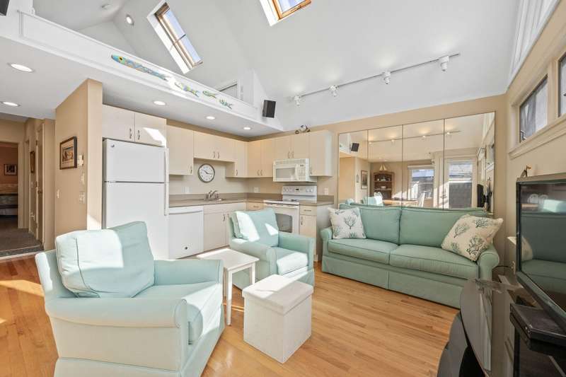 No need to keep searching--this 980 sq ft waterfront condo in Provincetown's desirable East End checks all the boxes. Located near St. Mary's, this well-managed 4-unit association offers the amenities buyers want, with low fees and recent improvements including a new roof and skylights--already paid for by the seller.Inside, you'll find an open living, dining, and kitchen area with vaulted ceilings, custom cordless blinds, and incredible natural light. Step out to your spacious wraparound deck and enjoy harbor views, also visible from the primary bedroom with ensuite bath. A generous guest bedroom, second full bath, in-unit laundry, and extra enclosed storage off the hall add to the ease of living.A bonus loft offers added storage, and both pets and rentals are allowed. Whether you're looking for a year-round home, investment property, or Cape getaway, this turnkey condo is a rare find.