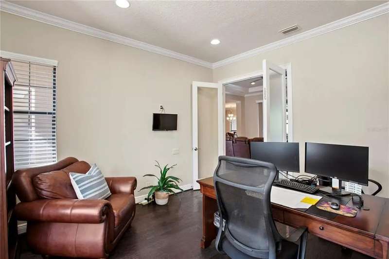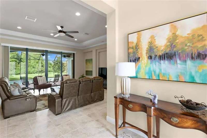 The charm of Ladera Estates - live expansively, privately, and beautifully. Known for it’s blend of tranquility and convenience, Ladera Estates offers a unique, gated lakefront community on Lake Merrywater. Welcome to 1213 Merry Water Drive with a timeless design, modern comfort, and breathtaking natural surroundings. Built in 2015 and situated on just under an acre with no rear neighbors, this custom-built residence offers 4882 sq ft of total living space. Set on .98 of an acre, this estate is designed for both grand entertaining and everyday luxury. Key Features: • GREAT ROOM – Enter through double doors into the Great Room with 12-ft ceilings, surround sound, and views of the pool, conservation and pond. A comfortable family room with sliding glass doors for seamless living to the outdoor terrace. • DESIGNER KITCHEN – An oversized granite island anchors the space, complemented by a hidden walk-in pantry with a coffee bar and dining room built in storage. Open concept living with an oversized casual dining room - ideal for gatherings large or small. • PRIMARY SUITE & MAIN LEVEL ROOMS – The main-level primary suite includes dual custom walk-in closets, and spa-inspired bath with freestanding tub and oversized walk-in shower. Three additional bedrooms, as oversized study, and drop-zone with built-ins next to a large laundry room complete the thoughtful main floor. • UPSTAIRS LIVING – Two oversized suites upstairs, each with private baths and large closets—perfect for guests, teens, or multigenerational living. The upstairs entertainment zone includes a large bonus room, wet bar with fridge, and balcony overlooking the serene pond and backyard conservation views. A separate movie room with 1/2 bath complete this entertainment space • RESORT-STYLE LIVING Heated pool with sunshelf, covered and fully screened terrace, full summer kitchen, and access to a pool bath. Lush, mature landscaping and lots of extra green space are a perfect space for play or pets• ADDITIONAL HIGHLIGHTS – Features 8-foot doors on both levels, 3-car garage, custom-finished walk-in closets, pantry and additional storage closet, crown and tray ceilings throughout. • This estate is more than a home- it’s a retreat. Wake up to sunrise views, unwind in complete privacy, and enjoy the serenity of expansive natural surroundings that draw you to Ladera Estates.• Located in Lutz- one of the Tampa Bay area’s most sought-after communities for its natural beauty, larger homesites, and tranquil lifestyle- you’ll enjoy the peace of country-style living with the convenience of being just minutes from top-rated schools, hospitals, dining, shopping, major highways, and Tampa International Airport. It’s the perfect balance of space, serenity, and accessibility.