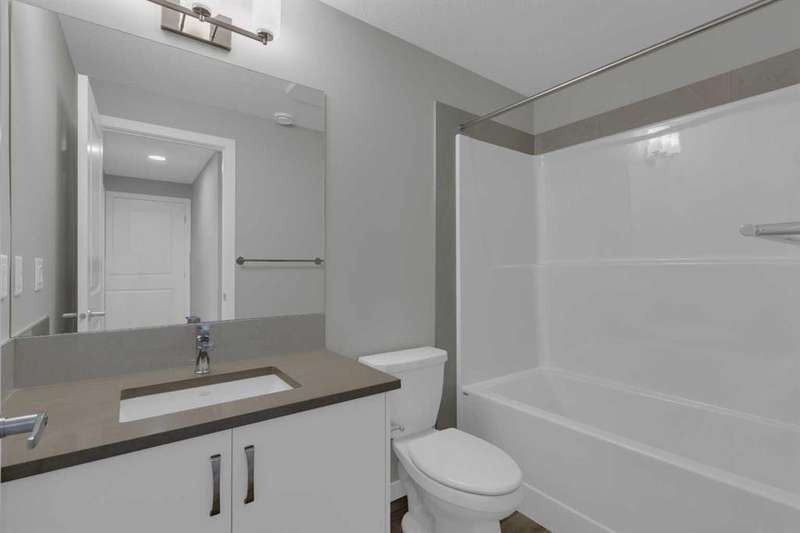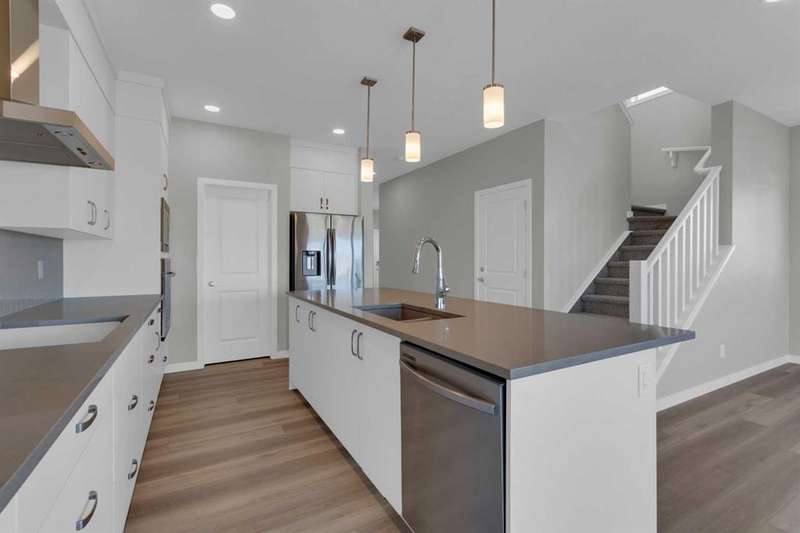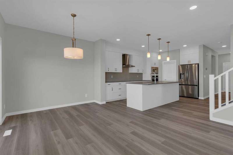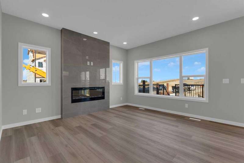 BRAND NEW – NEVER LIVED IN! A gorgeous new home built by Excel Homes! Presenting the Oxford A, this stunning residence offers over 2560 sq ft of above-grade living plus an amazing LEGAL TWO BEDROOM SUITE built to upstairs standards. Perfectly located in Silver Spruce, the newest subdivision in Calgary’s highly desirable community of Silverado, this home combines modern design with everyday convenience. You’ll love the community’s established feel, along with easy access to transit, major arteries, golf, shopping, schools, and parks. Even better, this property backs directly onto an environmental reserve, ensuring lasting backyard privacy. Step inside and experience the upgrades everywhere you turn. The main floor is bright and open with oversized windows filling the home with natural daylight. A full 4-piece bath is conveniently located next to the main floor bedroom, perfect for guests or family. The heart of the home is the chef-inspired kitchen with crisp white cabinetry, endless drawers and cabinets, a large walk-in pantry, built-in stainless steel oven and microwave, countertop range with chimney hood fan, and an impressive 9’ island for prep and gathering. Adjacent to the family-sized dining nook, sliding patio doors lead to a massive full-width deck overlooking the reserve, while the family room is anchored by a cozy fireplace with floor-to-ceiling tile surround. Upstairs, the layout delivers 4 spacious bedrooms including a serene primary retreat with views of the reserve, a spa-inspired 5-piece ensuite with stone countertops, double wide shower, and a tile-skirted soaker tub. Bedrooms 2 and 3 both feature walk-in closets, while every room is filled with natural light. A central bonus room separates the primary from the secondary bedrooms, creating privacy, and the upper laundry room offers shelving and functionality. The 4-piece family bathroom on this level is designed with dual sinks—perfect for busy mornings. The legal suite is just as impressive, offering its own fully equipped kitchen, a spacious family room, 4-piece bath, and two large bedrooms with egress windows. Private storage, under-stair storage, and separate utilities make this a turnkey opportunity for multi-generational living or revenue potential. Certified Built Green, this home is energy-efficient and designed with today’s lifestyle in mind. Your garage has high ceilings & epoxy floors! With 5 bedrooms above grade plus 2 in the suite, luxury finishes throughout, and quick possession available, this property is an absolute must-see.