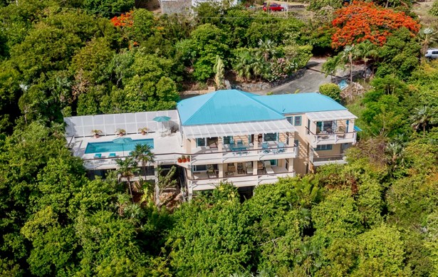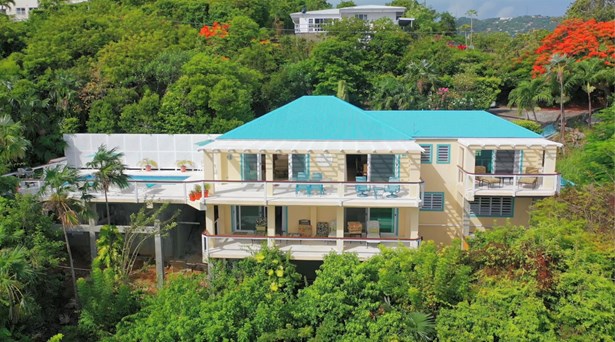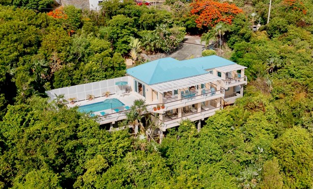 Fantastic opportunity to own a 4BR 4BA home in the prestigious, gated Peterborg enclave of Red Rock as well as a .54 adjacent parcel. This solid-concrete home boasts gorgeous down-island views and year-round trade-wind breezes. Easy, flat parking with minimal steps to the entrance of the main house!Enjoy the view from the veranda or relax on the large outdoor pool deck. There are 3-bedrooms in the main house with additional and separate apartment/guest room/office. All bedrooms have access to private outdoor areas and seating. Island charm and tropical living at it's best!
