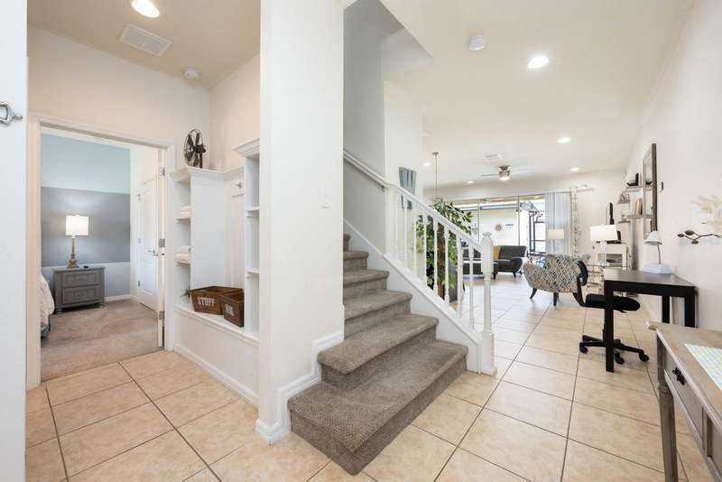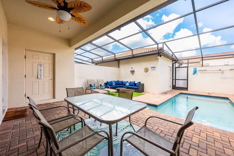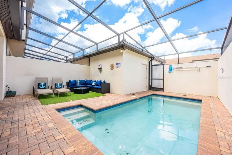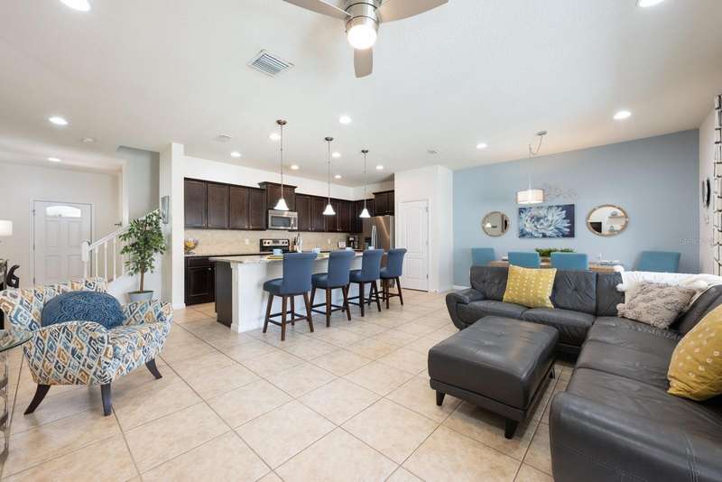 Under contract-accepting backup offers. Ask about a lender provided RATE BUY-DOWN CREDIT on this home! Seller may consider buyer concessions if made in an offer/ Seller may consider buyer concessions if made in an offer ****Vacation Mode: ON! Looking for a home that is part getaway, part money maker? This spacious **FULLY FURNISHED** 4-bedroom, 3-full and 1-half bath townhome in Windsor at Westside checks every box for a short-term rental, vacation spot, or both! With over 2,000 sq ft of bright, modern living space and your own **PRIVATE SCREENED/HEATED POOL**, it is the perfect setup just minutes from DISNEY and all the big name attractions. The covered front entry adds to the curb appeal of the TILE ROOF, nice landscaping, and welcoming vibe. Inside, the open concept main floor is made for time together, with easy care TILE FLOORS, FRESH PAINT (2024), NEW CEILING FANS (2024), and a kitchen that is ready for everyday living or entertaining. You will love the rich cabinetry, granite counters, STAINLESS STEEL APPLIANCES, large ISLAND with bar seating, and pantry storage. Whether you are whipping up a snack or hosting a feast, this kitchen delivers. Open the TRIPLE SLIDING GLASS DOORS and step out the COVERED PAVER LANAI overlooking your screened pool complete with safety fence and BRAND NEW OUTDOOR FURNITURE/CUSHIONS (2025) – ideal for lounging poolside between park days. The MAIN FLOOR BEDROOM and FULL BATH make it easy for guests of all ages, and upstairs the PRIMARY SUITE boasts a WALK-IN CLOSET and private en-suite bath, plus there are two more bedrooms, another full bath, and a LOFT that serves as a second living area/hang out space. NEW CARPET (2023) upstairs keeps it cozy. Being in Windsor at Westside means you (and your guests) get resort perks galore – GATED ACCESS, cable and internet, daily valet trash pick up, clubhouse, RESORT STYLE POOL and lounge, LAZY RIVER, water slide, hot tub, volleyball, basketball, tennis, a top-notch FITNESS CENTER and so much more. The best part? It’s all just down the street from this home! Close to Hwy 27, US 192, shopping, dining, golf, and all the theme park magic – you are making a great choice from day one. Bonus: Long term living/rentals are allowed in phase one! Keep this home as your vacation HQ, rent it out when you are not here, or both – either way, you win. Call today to schedule a tour and discover the endless possibilities on Majorca Dr!