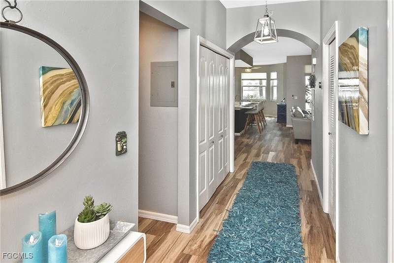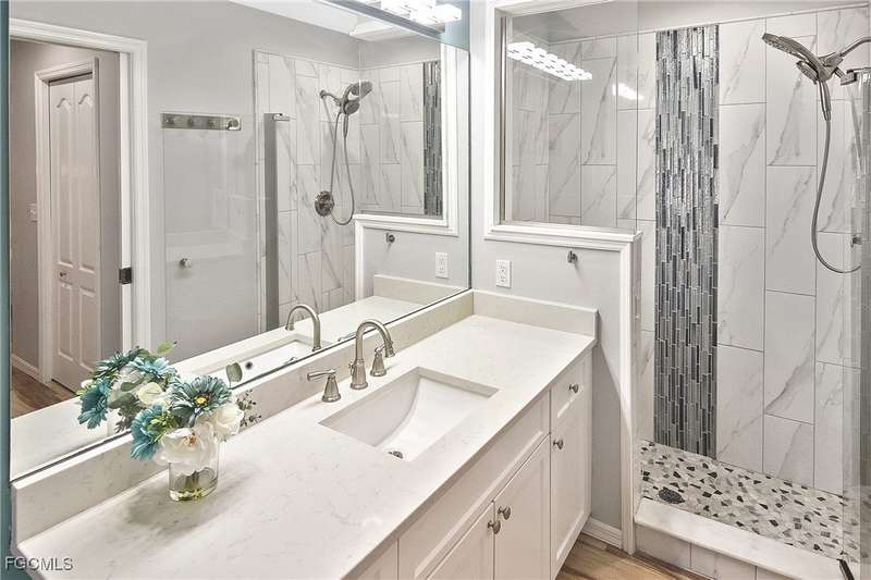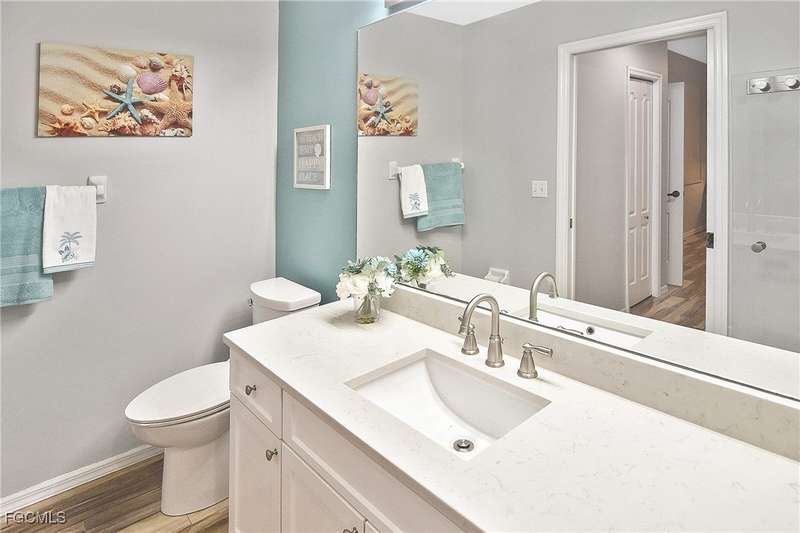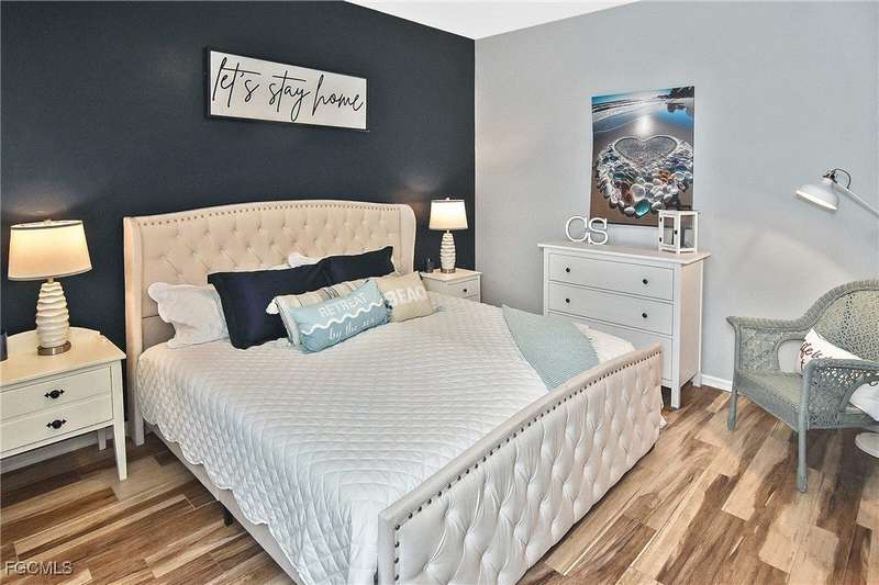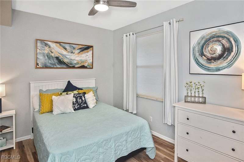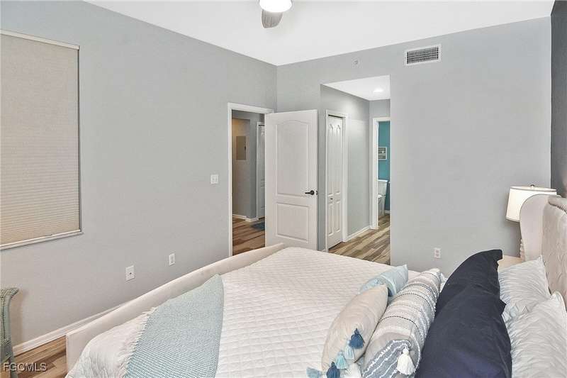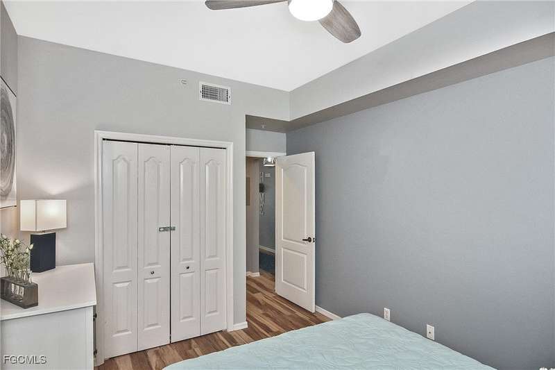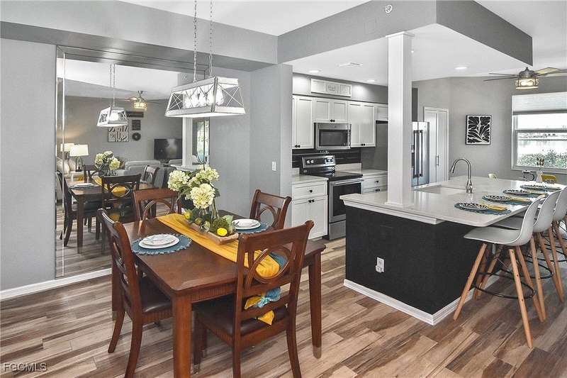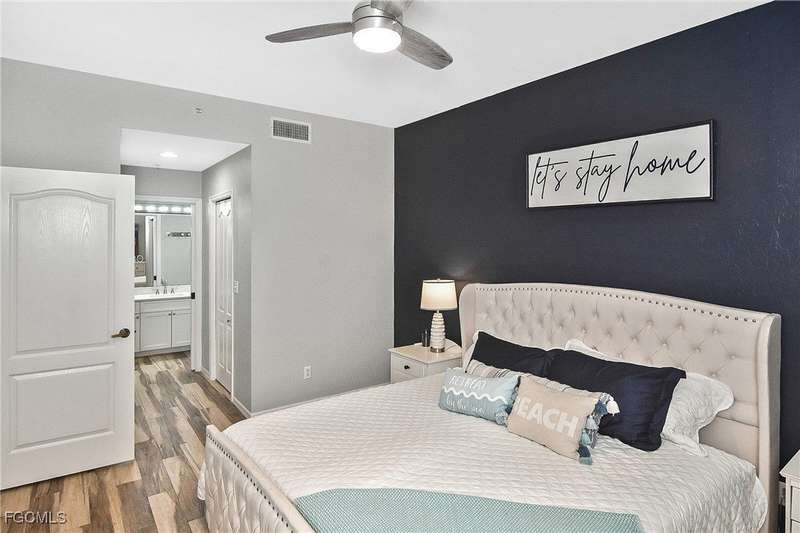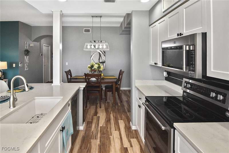 Welcome to your dream home in the esteemed Heritage Palms Golf and Country Club community! This upscale and completely renovated first-floor condo features vibrant colors and an avant-garde decor that define this striking, TURNKEY home. New tile flooring and modern light fixtures enhance the contemporary aesthetic throughout the space. As you enter, you'll be captivated by this unified and integrated kitchen and dining area, designed for effortless entertaining, with a sleek and streamlined granite countertop, new easy-close cabinets and pantry door, attractive stainless steel appliances, and striking backsplash. Stylish furnishings add to the charm and elegance, making this condo truly move-in ready. Step into the upgraded primary bath for a spa-like retreat. The neoteric glass shower doors, rich jewel-toned tile/backsplash, and dual rainfall showerheads will create a luxurious experience that will make you feel like you're at a high-end resort every day. Relax on the south-facing tiled lanai, offering a breathtaking and uninterrupted view of the lake, clubhouse and 18th hole of the Royal golf course. The large hurricane impact windows and sliding glass doors bring in plenty of natural light while providing peace of mind. This home also features a Nest smart thermostat, Ring doorbell, Maytag dryer 2023, and HVAC 2023. As an owner in Heritage Palms, you'll enjoy access to a private, gated, bundled Golf community, that features two 18 hole championship golf courses, along with various amenities, including tennis, Pickleball, bocce, activities, center, exercise, and yoga, classes, and more. The debut of the new Oasis Grill and tiki bar, with a resort style pool, is scheduled to be completed this October 2025. The clubhouse offers formal and casual dining. This community is conveniently located within 3 miles of shopping and dining, 10 miles from the RSW airport, making it perfect for full-time living or a seasonal haven.