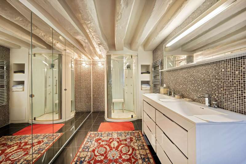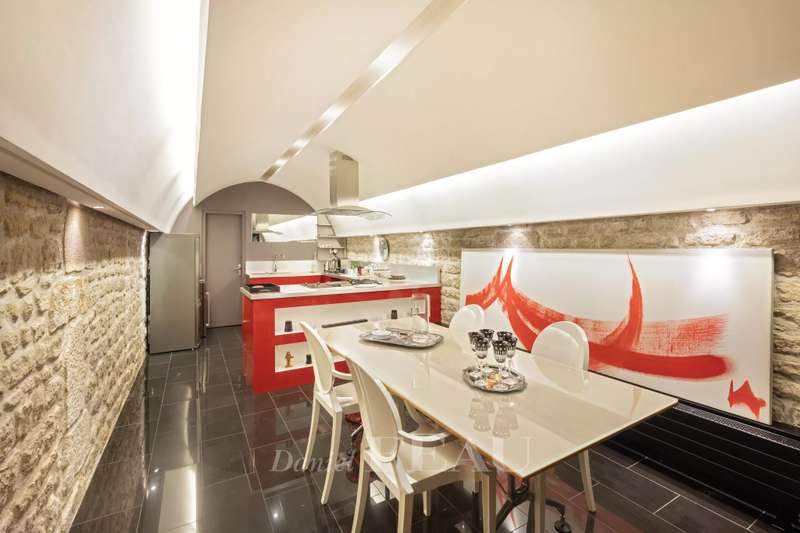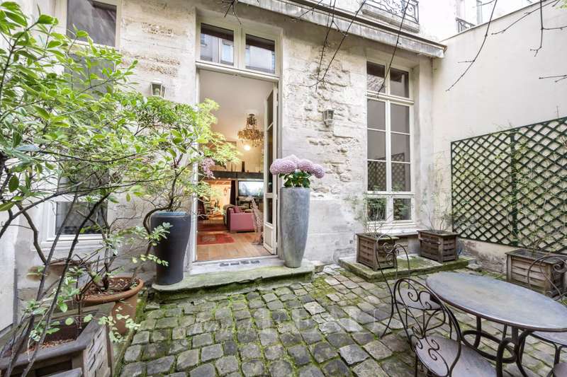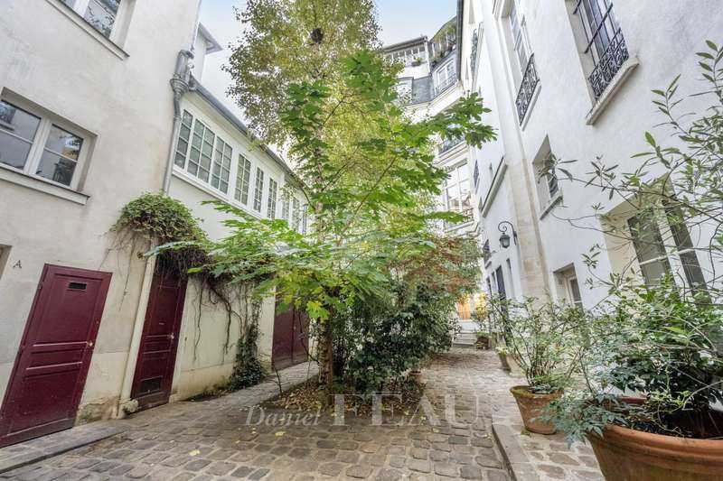 In the heart of the highly sought-after Rue Charlot, just steps from the Marché des Enfants Rouges, lies a rare gem — a true house within an 18th-century building. With a surface area of 133.77 m² (Carrez law) and 154.16 m² total floor space, this reception apartment stands out for its 33 m² private garden, hidden from view, and its unique charm. The layout is as follows: On the ground floor, a private entrance, a study, and a spacious 45 m² reception room featuring a 4-meter-high ceiling and an original fireplace, all opening onto a pleasant private courtyard. Upstairs, a mezzanine bedroom suite offers ample storage, a shower room, and separate toilets. On the lower level, a fully furnished and equipped dining kitchen, a laundry area, and a storage room complete the property. Combining space, elegance, and tranquility, this apartment is a true haven of peace in the heart of the Marais, within one of its most coveted neighborhoods.