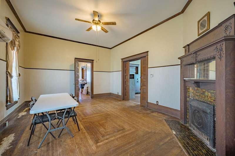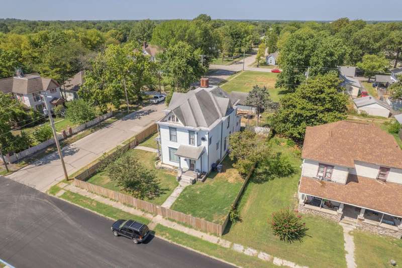 Historic Folk Victorian on Corner Lot in Webb City!Step into a piece of Webb City history with this charming 1904 Folk Victorian home, once owned by Charles Morrow MankerWebb City's first Republican mayor and a key figure in the city's early development.This spacious 5-bedroom, 2-bath home blends timeless character with everyday functionality. The main level features a primary suite with attached bath, a home office, formal living and dining rooms, and a convenient laundry room. Upstairs, you'll find additional bedrooms and access to a full, unfinished attic - a perfect opportunity for expansion or creative use. The home sits on a corner lot and includes a detached garage and an exterior-access basement cellarideal for storage or storm shelter use. Full of original charm and located in the heart of Webb City, this is a rare opportunity to own a true piece of local history. You will enjoy the space, history and charm this home has to offer.