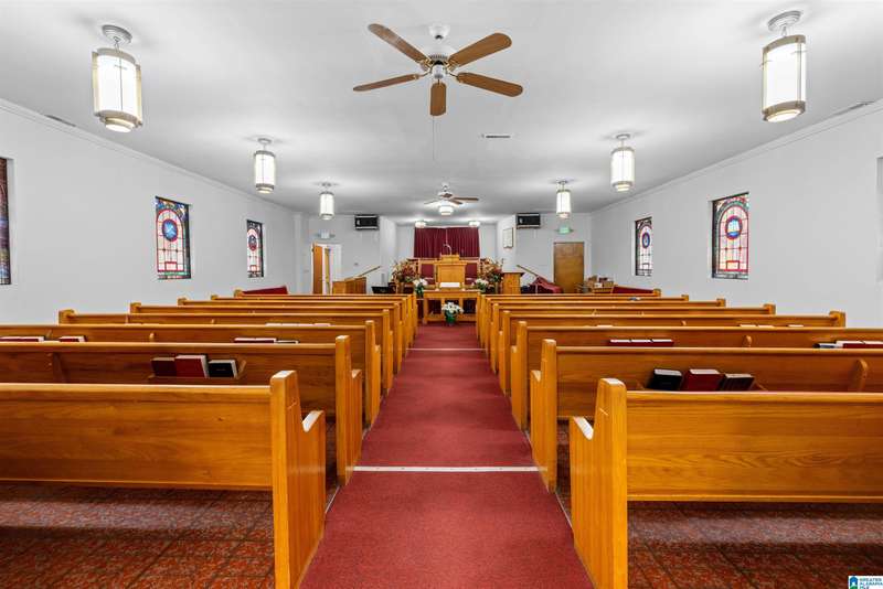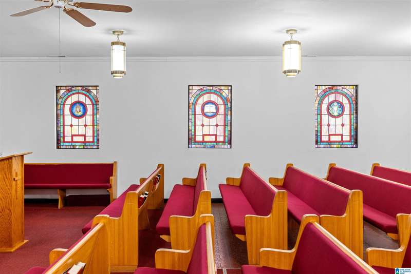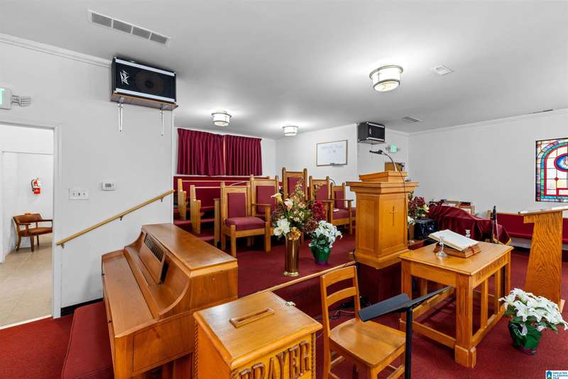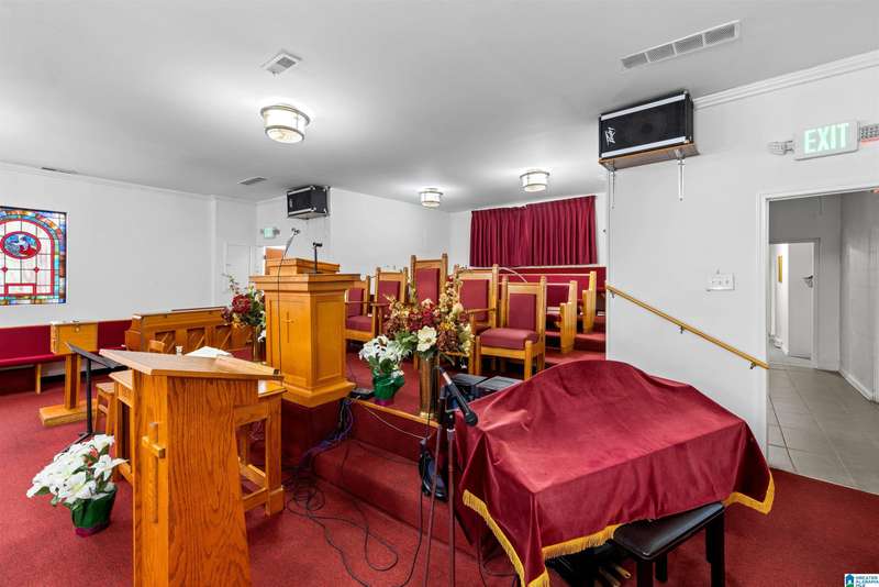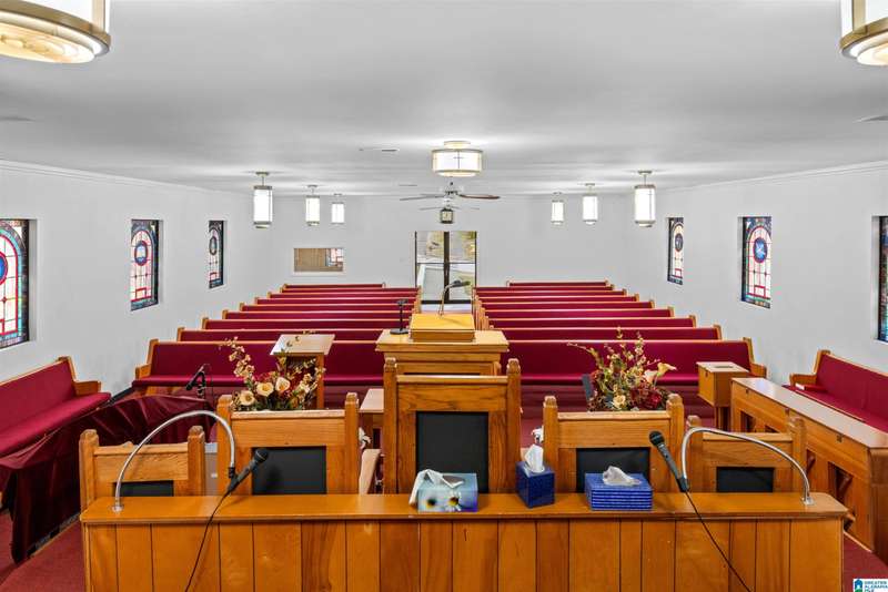 An exceptional opportunity in Homewood for congregations or organizations in need of a spacious and functional church facility! This large building sits on two lots and is designed to accommodate a variety of gatherings, events, and administrative needs. The sanctuary features a stage and baptismal pool, providing a welcoming space for worship and community services. With eight offices, five public restrooms, and a large kitchen with a dining hall, the property is well-equipped for both ministry and operational activities. Plenty of room to grow, serve, and connect in this well-located, versatile facility. Furniture to remain with acceptable offer.