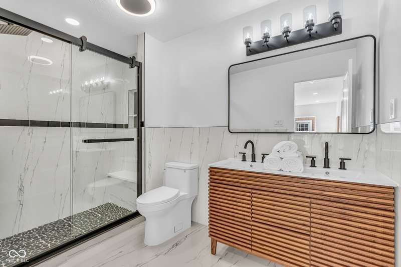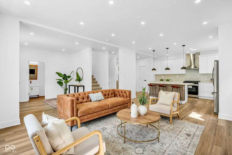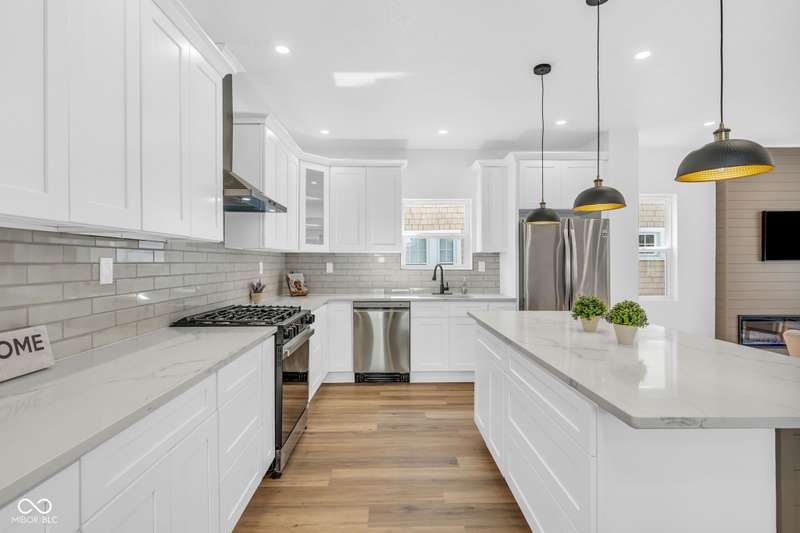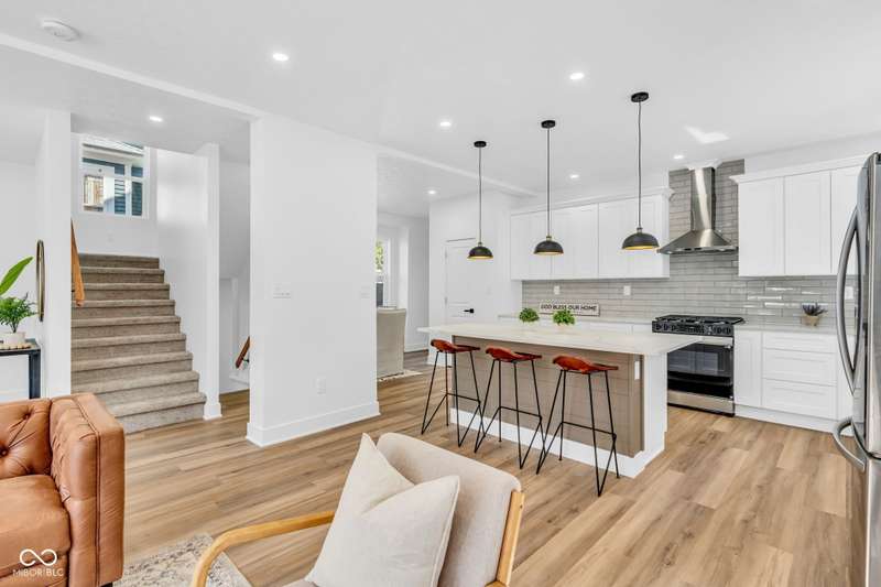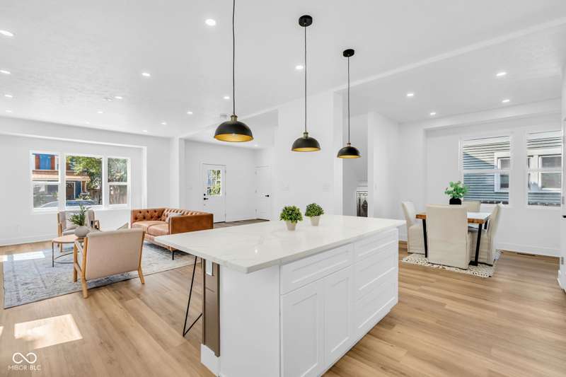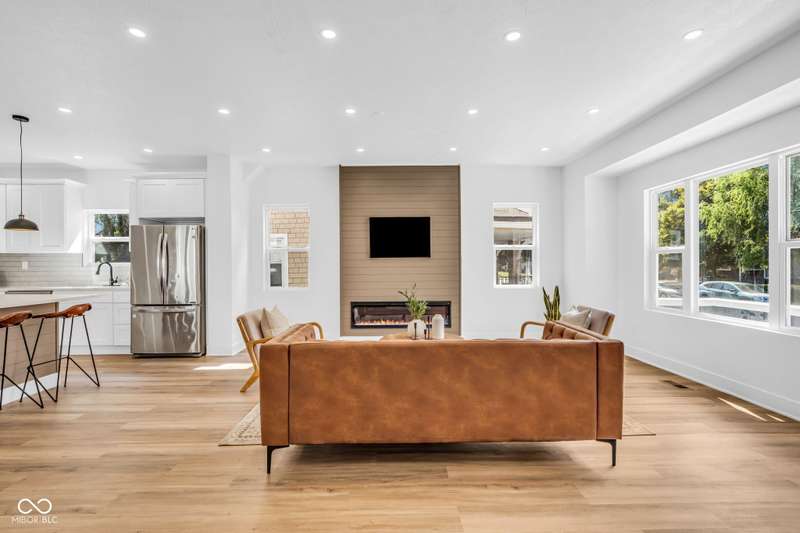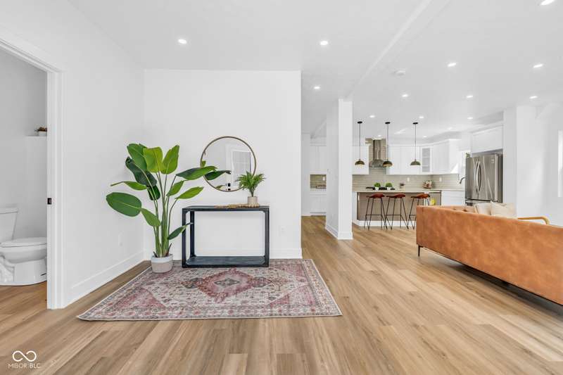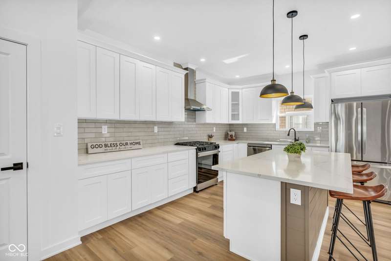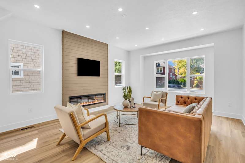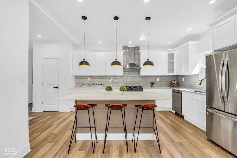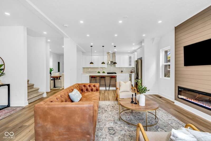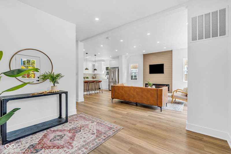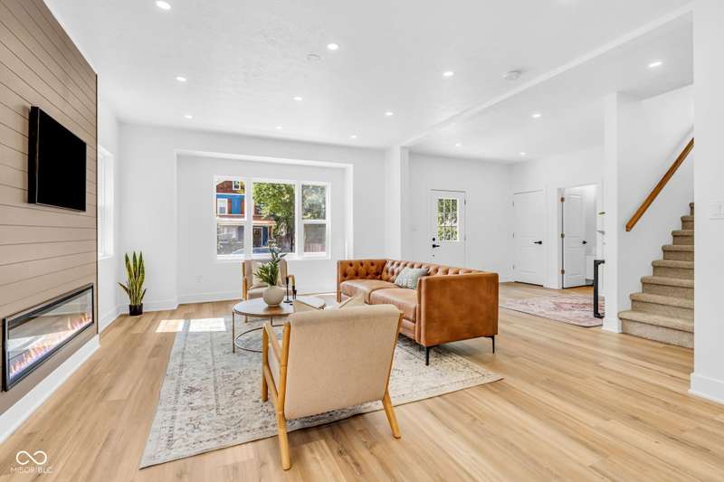 Welcome to your beautifully renovated home in the heart of Mapleton-Fall Creek-just minutes from downtown Indianapolis! This stunning residence has been completely rebuilt and thoughtfully updated by the current owner, combining modern amenities with timeless charm. Every detail has been carefully considered-from new windows and doors to flooring, bathrooms, new plumbing, all new electrical and 2 separate HVAC (1st floor/bsmt & 2nd/3rd floors) and beyond. Featuring two spacious primary suites (one on the main level and one upstairs), this home offers flexible living arrangements ideal for guests, multigenerational living, or simply added convenience. The gourmet kitchen is a true highlight, boasting sleek quartz countertops, a stylish tile backsplash, and a professional-grade gas range with a custom vent hood. A large center island provides the perfect space for casual dining or entertaining. Enjoy cozy evenings in the living room with its modern fireplace and eye-catching accent wall. Every bathroom has been tastefully updated with contemporary finishes that blend style and function. Need extra space? Head up to the third-floor bonus room-ideal for a home office, playroom, or creative studio. Outside, you'll find a brand-new deck, privacy fence, concrete driveway, and parking pad-along with updated landscaping and sidewalks for added curb appeal. This home is truly move-in ready and feels like new-offering comfort, quality, and style just 3 miles from downtown Indy & Fountain Square. Don't miss your chance-schedule your private tour today before it's gone!