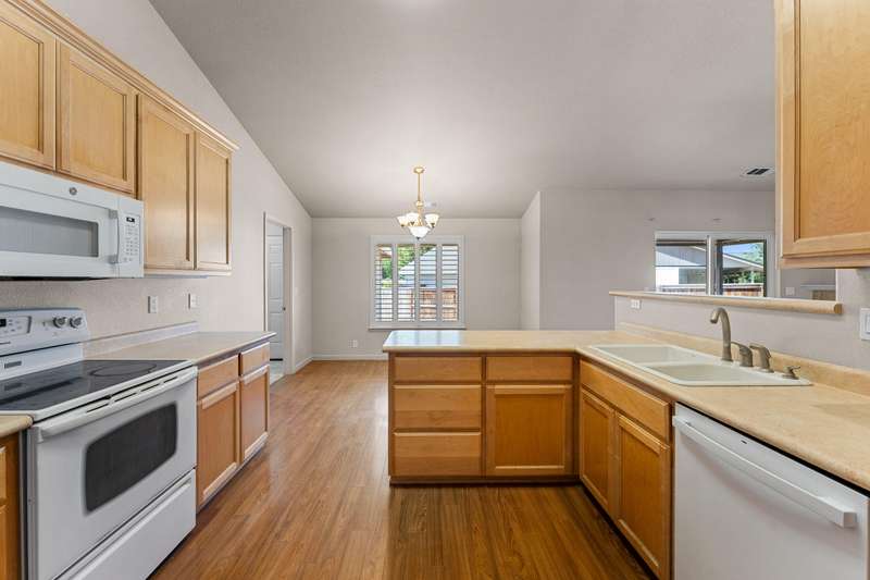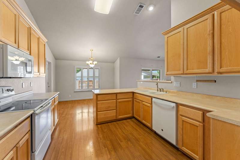 Welcome to this beautiful TURN KEY home nestled in a desirable subdivision! Built in 2005, this charming 1768sf residence offers a thoughtful floor plan with vaulted ceilings and abundant natural light throughout. Step inside to enjoy brand new carpeting, a formal living room. The open-concept kitchen features a pantry and solid surface countertops, ideal for everyday cooking and entertaining. Opens into a large dining area and into a large Family room and a cozy gas fireplace perfect for relaxing evenings. Plantation-style shutters add elegance and privacy to the living spaces. There is a spacious 2-car garage for ample storage, a covered patio great for outdoor living year-round and RV Parking! Don't miss this turn key gem on a corner lot. Sold AS-IS.