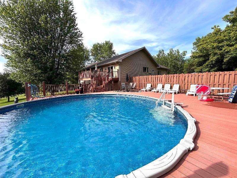 Welcome to this stunning 3 bedroom home in an ideal location! This property features a beautiful pool perfect for relaxation and entertaining. Inside, you'll find a finished family room and bar area in the lower level and a separate office space, providing ample room for work and play. The open layout and modern design offer a bright and welcoming atmosphere throughout. The sunsets can't be beat. Enjoy the convenience of nearby amenities and easy access to the interstate, schools, shopping, and dining. This home is perfect for those looking for both comfort and style in a sought-after location. Don't miss out on this incredible opportunity to live minutes from town in the hills just south of Tomah!