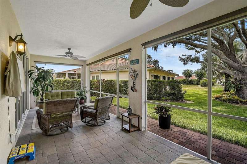Welcome to your ideal Florida retreat in the highly desirable Golf Pointe community of Palm Aire. This beautifully maintained turnkey furnished villa offers 2 spacious bedrooms, 2 full bathrooms, and a versatile bonus room perfect for a home office or cozy den. The open-concept layout features a light-filled living space, a well-equipped kitchen, and a oversized private screened lanai ideal for relaxing or entertaining. Additional highlights include a 2-car garage, in-unit laundry, and pet-friendly accommodations for a small dog with owner approval. Enjoy resort-style living with access to two community pools just steps from your door. Located near the renowned Palm Aire Country Club, you'll be minutes away from world-class golf, tennis, dining, pickleball and social events. Convenient to shopping, dining, and Sarasota's top beaches. Book your private showing today! This unit is not available for 2026 Season. Reservations available starting April 2026!