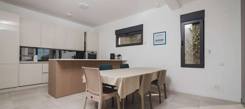The villa has easy access to the main road with 4 outdoor and two indoor parking spaces. Within it, there is a technical room and an apartment for staff accommodation.