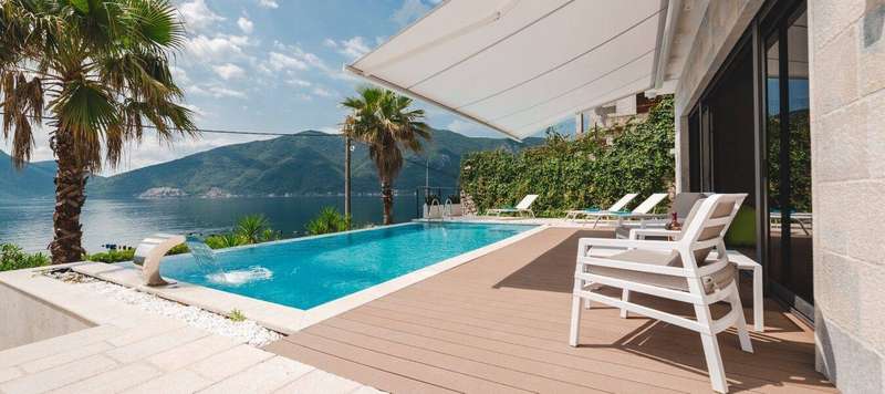 This newly built villa is situated in Kotor Bay, in the picturesque place Strp-an authentic village, with traditional old stone houses. Villa is located on the front line, with its beach and mooring for yachts up to 35m.