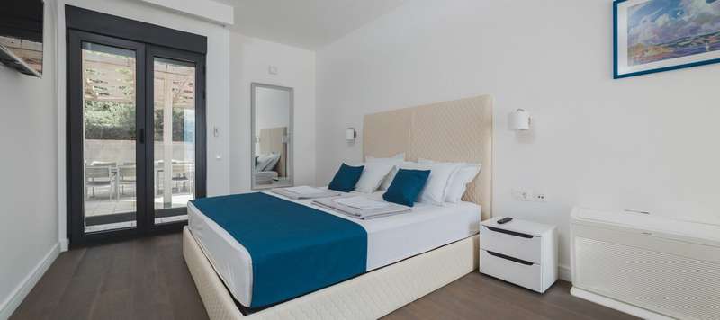Upstairs are two apartments with bathrooms. Both apartments have terraces overlooking the sea.