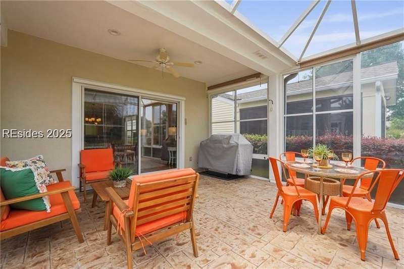 If Sun City Hilton Head is your dream destination, dont miss this popular Egret Model with stunning lagoon views! This 2BD/2BA home, complete with an office/flex room, offers a spacious open-concept layout perfect for enjoying the southern lifestyle. The large eat-in kitchen flows into the dining and living area, with views through the patio door to a lanai with vinyl windows and a durable hard coat roofperfect for relaxing with your morning coffee or evening sunsets. Primary bedroom features ensuite bathroom and large walk in closet. Sun City Hilton Head in Bluffton, SC, is a premier 55+ community spanning over 5,000 acres, offering an unmatched resort-style lifestyle. Residents enjoy 54 holes of golf across three scenic courses, six pools (including indoor lap and leisure pools), and three fully equipped fitness centers with classes and studios. The sports park offers tennis, pickleball, bocce, softball, volleyball, croquet, and more. Social and creative outlets abound with a ballroom, 16,000 sq ft performing arts theater, arts and crafts studios, woodworking shop, billiards, card rooms, and a library. Outdoor enthusiasts appreciate the Lake Somerset and Riverbend Docks, fishing, miles of walking and nature trails, community gardens, and three dog parks. There are over 150 clubs covering everything from arts and music to technology and lifelong learning. Additional amenities include on-site restaurants, RV and boat storage, and a secure, gated environment with convenient access to Hilton Head beaches, Historic Savannah and Charleston along with local shopping, dining, and healthcare. Sun City is also expanding with a new multimillion-dollar resort style amenity center coming soon!!!!