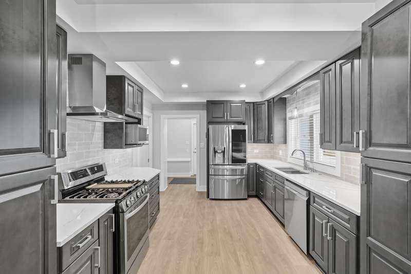 This 4 BR, 2 Bath, owner occupied home has been totally rebuilt from top to bottom over the last 2 years. Some of the numerous updates and amenities include: Custom soffits and built in glass shelving in living room/kitchen; Shaker cabinetry with soft close doors and drawers; Level 3 quartz countertops; Kraus kitchen sink with Delta faucet; Perimeter LED soffit lighting; LG Thin Q Series Insta-view Refrigerator, Convection Oven with air fryer, Dishwasher, Microwave, and Zephyr stainless steel Exhaust Hood; Bliss luxury vinyl flooring; Kohler "Reve" bathroom ensemble (toilet, pedestal sink, faucet, toilet paper holder, and towel bar), Jeld Wen solid core single panel interior doors; Hunter ceiling fans; Schluter waterproofing systems in shower and lower level bathtub area; Double tilt lower level egress windows; Pella vinyl double hung windows; Therma Tru fiberglass front door with leaded/beveled glass; Jeld Wen exterior steel doors with beveled glass (back door and garage door); Anderson full view storm doors; maintenance free vinyl siding; Day & Night furnace (Carrier brand division); Navien tankless hot water heater; Lutron "Sunnata" dimmer switches throughout; Fully insulated interior walls and R-30 above ceiling; Google cameras around perimeter of house with front/back camera doorbells; 28' deep 2.5+ car garage; and concrete patio and sidewalks. Enjoy Popular Downtown Griffith's Grind-house Cafe & Craft Breweries, not to mention the Many Other Restaurants, Shops & Entertainment Businesses. Some of Griffiths Many Seasonal Events Include: Rock and Rail Fest, Blues & Jazz Festival, Farmers Market, Art in the Park, Symphony in the Park, & Oktoberfest. This IMPRESSIVE HOME is a TRULY MUST-SEE. NOTE: There are currently NO EXEMPTIONS FILED. With the Indiana 1 Per Cent TAX CAP, and the Voter Approved School Referendum, Taxes would be 2,391 P/Y with the Homestead Exemption applied at the Current Assessed Value per IN /dlgf search Tax Calculator.