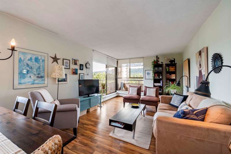 Well-maintained 1 bedroom, 1 bathroom unit offering 749 SF in The Maple building of Timberlea Towers. Open floor plan perfect for first-time buyers & investors. BONUS - Heat, hot water & electricity included in strata fees! Upgraded shared laundry, 1 parking & 1 storage locker included. Amenities: indoor pool, gym, sauna, party room. Steps to Lougheed Town Centre (90+ shops, Walmart, London Drugs). Lougheed Skytrain across the road! Concrete construction provides sound insulation.