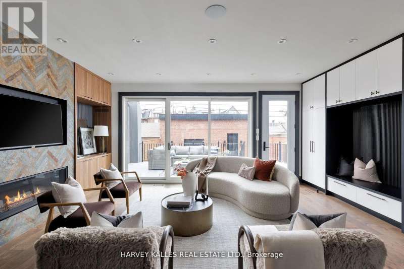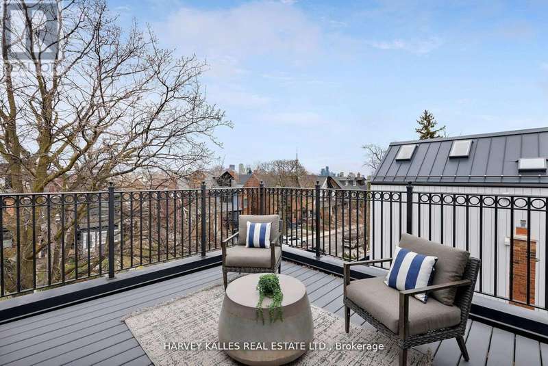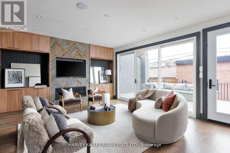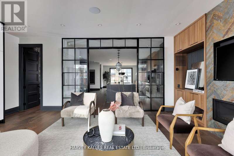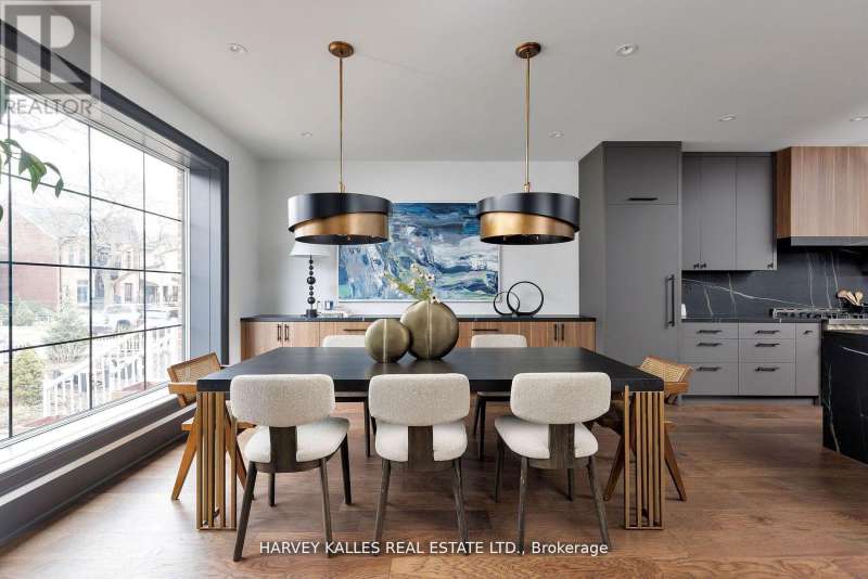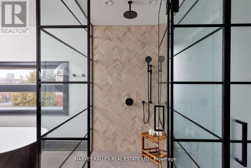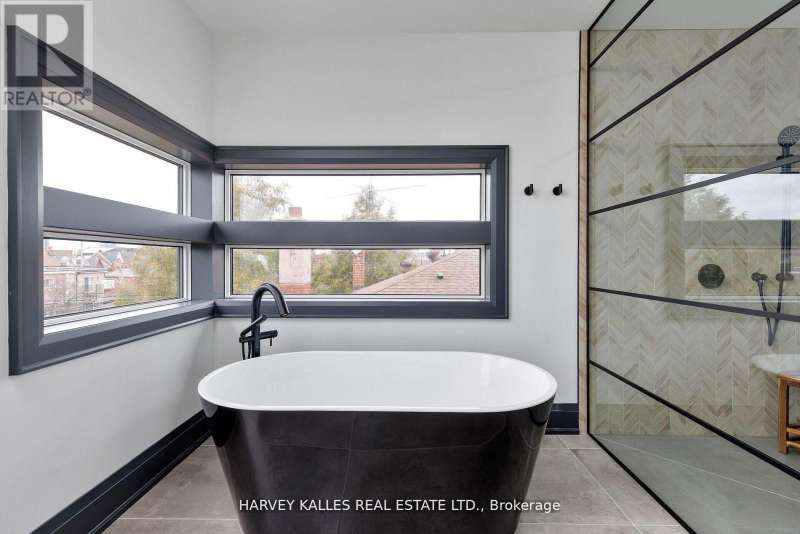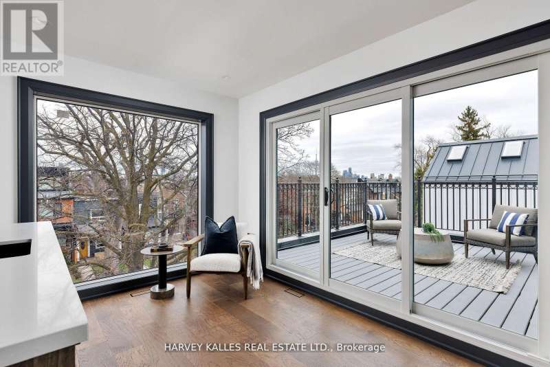 A Toronto version of a New York Industrial soft loft. A family home w/nearly 4500 sq. ft. of living space on 4 levels. Nearly 3100 above grade. Neighbourhood transforming interior design by Glen Peloso. Detached, bright, wide interior home sits on a 27.98 foot wide lot w/wide open Dining facing East, bathed in daylight from every side extends to a massive custom kitchen w/ oversized kitchen island, separate large b/i Refrigerator and separate Freezer, and bespoke lighting, and plenty of storage. A factory inspired glass wall and double doors separate main area from an opulent family room adorned with a fireplace, built-in shelving, & a wall of glass leading to a massive outdoor deck, a second rear mud room with shelving & seating. The powder room is clad w/custom printed New York streetscape wallpaper. Primary bedroom is perched above all - on the third floor ...and after seeing hundreds of third floor primarie throughout the city, your agent, you and your friends won't forget this one. The 3rd floor landing is a shocker! With East-facing sunroom wrapped in floor to ceiling windows. A coffee station, and wet bar. A chill area that leads to a City Scape East-facing observation deck w/ stunning views in all directions. You may never want to leave this level which continues into your massive Primary through privacy doors. With windows, natural light and views all around, you will love the finishes, built-ins,& fire palce. Your sprawling primary bath - a modern and elegant extension of your retreat. Massive walk-in closet anchored by a centre island with a skylight, shelving for all dressing needs and even some room for Him. Second floor houses a large 2nd bedrm., with own 4 pc ensuite. 2 more large bedrooms w/access to balcony & a full laundry and utility room. Another 4 piece bath. Your lower is around to 1200 sq. ft. massive rec room, a glassed-in wine cellar, large nanny suite and 4 pc bath + cantina. Huge garage for 2.5 cars accessed via laneway. HVACx2 (id:6370)