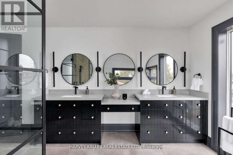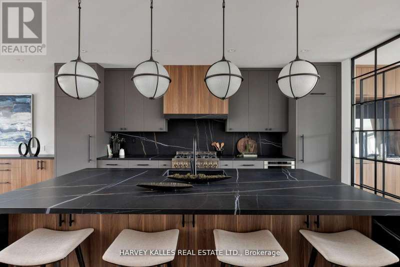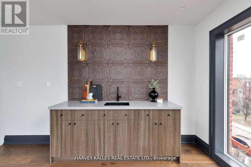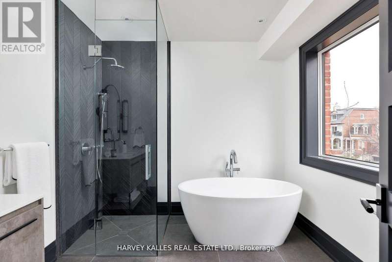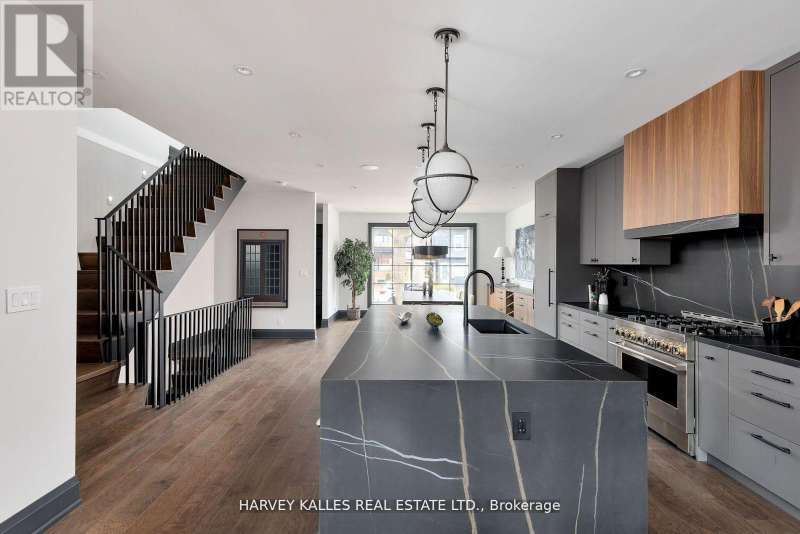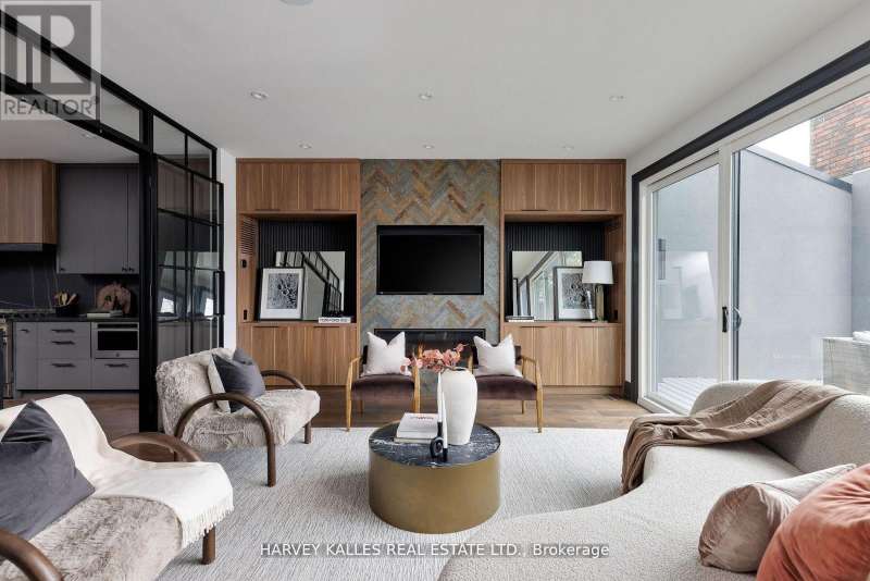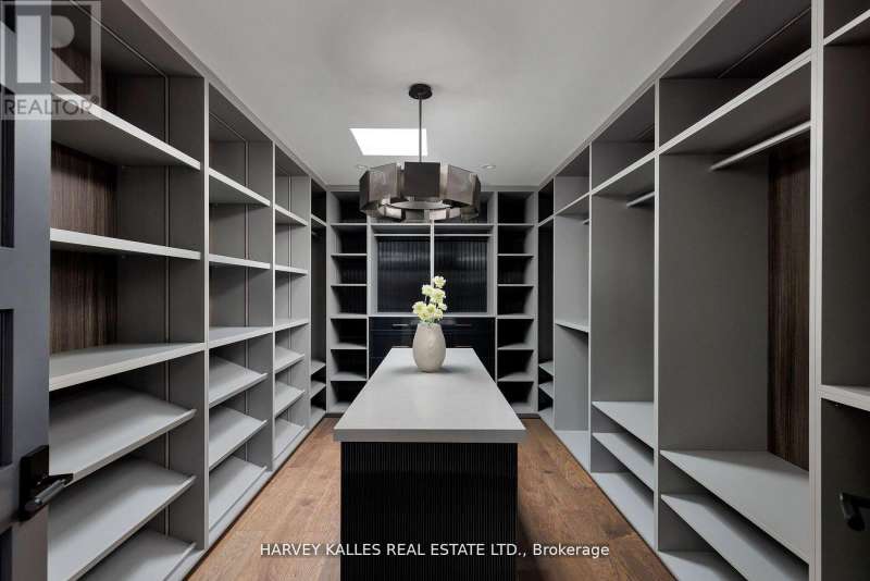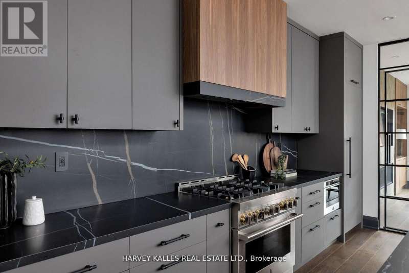 A Toronto version of a New York Industrial soft loft. A family home w/nearly 4500 sq. ft. of living space on 4 levels. Nearly 3100 above grade. Neighbourhood transforming interior design by Glen Peloso. Detached, bright, wide interior home sits on a 27.98 foot wide lot w/wide open Dining facing East, bathed in daylight from every side extends to a massive custom kitchen w/ oversized kitchen island, separate large b/i Refrigerator and separate Freezer, and bespoke lighting, and plenty of storage. A factory inspired glass wall and double doors separate main area from an opulent family room adorned with a fireplace, built-in shelving, & a wall of glass leading to a massive outdoor deck, a second rear mud room with shelving & seating. The powder room is clad w/custom printed New York streetscape wallpaper. Primary bedroom is perched above all - on the third floor ...and after seeing hundreds of third floor primarie throughout the city, your agent, you and your friends won't forget this one. The 3rd floor landing is a shocker! With East-facing sunroom wrapped in floor to ceiling windows. A coffee station, and wet bar. A chill area that leads to a City Scape East-facing observation deck w/ stunning views in all directions. You may never want to leave this level which continues into your massive Primary through privacy doors. With windows, natural light and views all around, you will love the finishes, built-ins,& fire palce. Your sprawling primary bath - a modern and elegant extension of your retreat. Massive walk-in closet anchored by a centre island with a skylight, shelving for all dressing needs and even some room for Him. Second floor houses a large 2nd bedrm., with own 4 pc ensuite. 2 more large bedrooms w/access to balcony & a full laundry and utility room. Another 4 piece bath. Your lower is around to 1200 sq. ft. massive rec room, a glassed-in wine cellar, large nanny suite and 4 pc bath + cantina. Huge garage for 2.5 cars accessed via laneway. HVACx2 (id:6370)