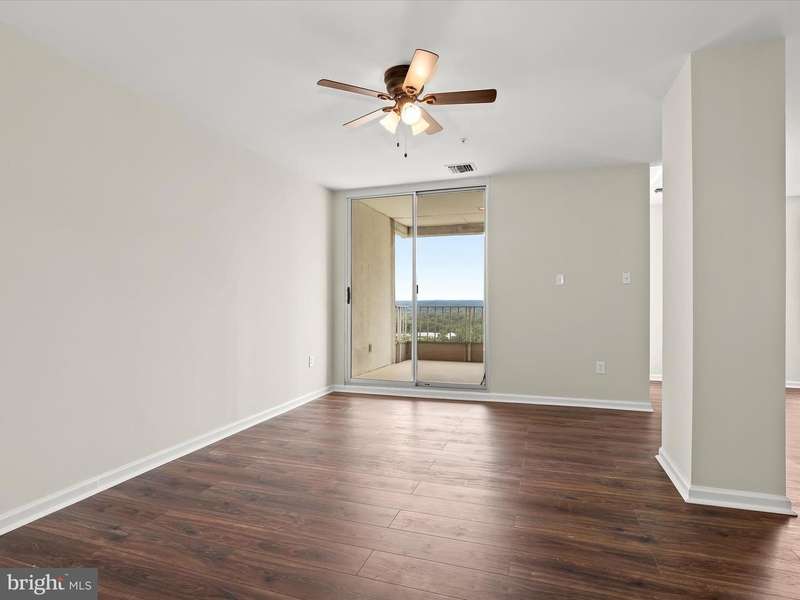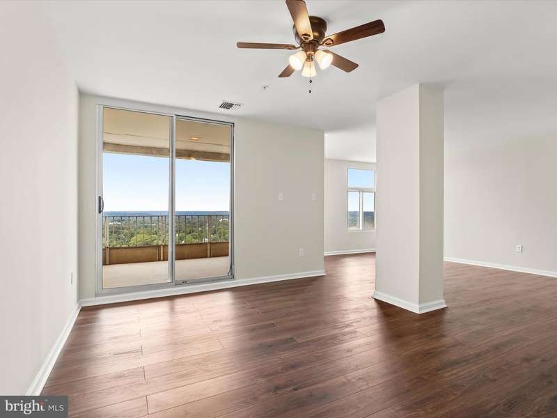 Experience panoramic Towson views from this rarely available two-level penthouse featuring 3 bedrooms and 2.5 baths. Arrive in style through the welcoming reception area and take the elevator up to the 27th floor, where your private retreat awaits. The main level showcases an airy open floor plan with fresh neutral tones and durable luxury vinyl plank flooring. Sunlight fills the spacious living room, which flows seamlessly into the dining area and out to a generous balcony, perfect for taking in the ever-changing colors of the seasons. The renovated eat-in kitchen is both stylish and functional, complete with new stainless steel appliances, granite countertops, abundant workspace, and the convenience of an in-unit washer and dryer. Upstairs, plush new carpeting leads to the serene primary suite, highlighted by a wall of windows, a double closet, and a private en suite bath. Two additional bedrooms, each with access from its own private slider to the sky deck, and a refreshed full bath create a tranquil upper-level retreat. With thoughtful updates throughout and access to community amenities including a clubhouse, rooftop pool, sky decks, elevator service, and available garage parking, this penthouse offers the best of elevated living in the heart of Towson. Note: Select interior photos have been virtually staged.