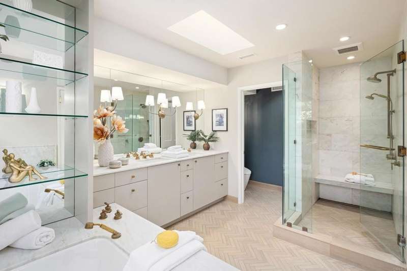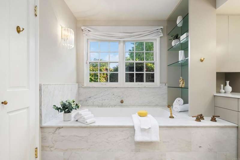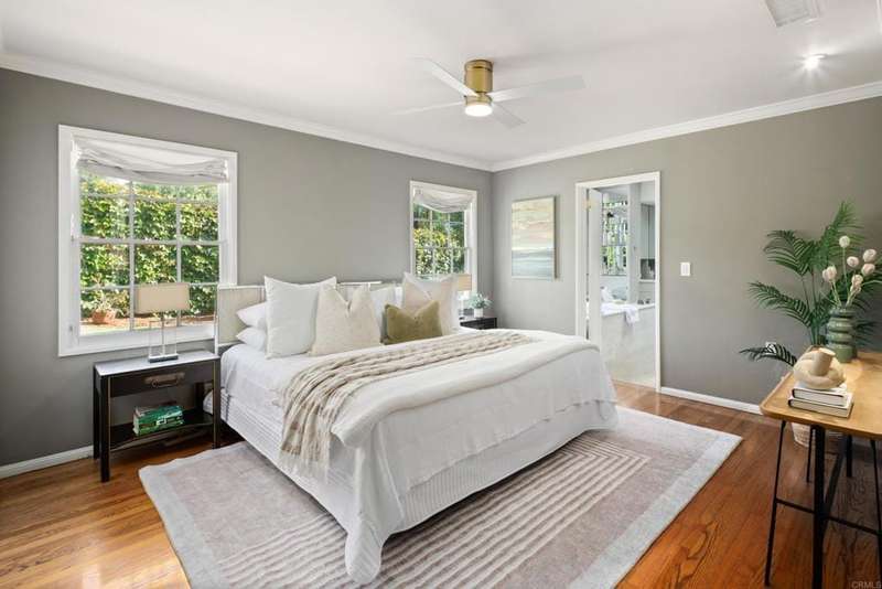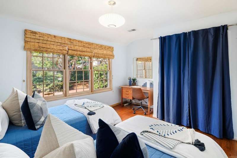 Character defines this Nantucket-style home situated on a flat, almost quarter acre corner lot in coveted Upper Hermosa. Cedar shingles and wood siding with a rich patina set the tone for the craftsmanship within, highlighted by custom built-ins throughout, pegged hardwood floors, detailed dental mouldings and window benches. The kitchen was fully transformed in 2018 with artisan cabinetry, quartzite countertops, Sub-Zero refrigerator, Dacor ovens, and Miele cooktop to create a modern space that enhances the style, functionality and flow. Open-beamed ceilings, clerestory windows and french doors invite an abundance of natural light while seamlessly connecting to the private, verdant backyard with lush landscaping and heirloom fruit trees (mango, pomegranate, fig, lemon, lime, mandarin & avocado). Single-level living with just a few steps throughout, this home has 4 bedrooms & 4 bathrooms, one of which is a perfect guest suite, and magically blends history, charm and modern elements. Located in one of La Jolla's most sought-after neighborhoods with tree-lined curvilinear streets, and walking distance to beaches, the bike path, Bird Rock & The Village!