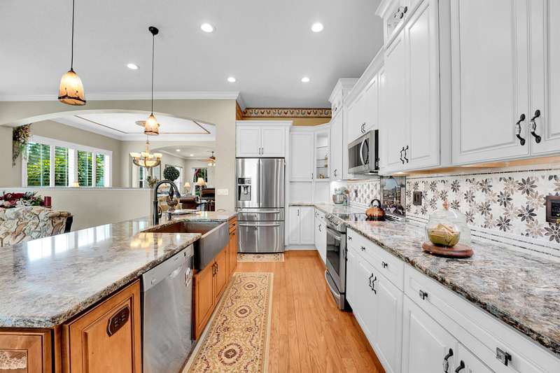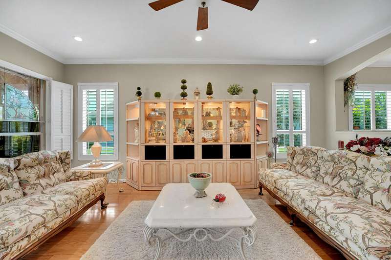 Set on the 1st fairway of Hammock Creek's Jack Nicklaus course, 2640 SW Bear Paw Trail offers 4BR, 2.5BA, and offers 2862 SqFt of refined Palm City living. The split layout flows from formal living/dining into a renovated kitchen with hammered copper sink, quartz counters, and island, opening to a cozy family room. An enclosed sunroom with windows that can withstand 140mph winds frames sweeping golf views. IMPACT windows, a 2016 roof, and an extended paver patio provide peace of mind with potential for a pool. Minutes to top rated schools, boat ramps, Hammock Preserve, historic Stuart, waterfront dining, boutique shopping, and Stuart beaches, this home blends comfort, convenience, and an active Florida lifestyle. Easy access to I95 and turnpike.
