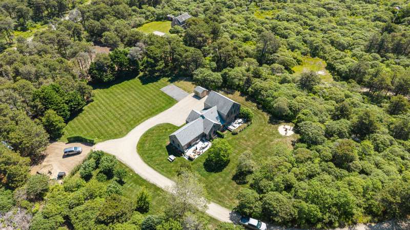 Minutes away from NGC, and including 2 complete homes. 12 Longwood Dr. is a magical property surrounded by manicured lawns and mature natural vegetation. The long winding driveway passes the 2 bedroom Guest Cottage before continuing down a slight grade to the expansive 4 bedroom Main House site. The Main House has an open floor plan with a cathedral ceiling living room, connected to a long hallway, creating privacy for the bedrooms. At the end of the hallway is the TV room. Two outdoor decks, a fire pit, and an apple orchard that produces different varieties, as well as a fruit-bearing pear tree, add to the special ambience of this property. A private path leads to the milestone bicycle path and easy access to Sconset Village. Across Milestone road are hundreds of acres of conservation land, cranberry bogs and miles of trails to walk or bike. Multiple locations available for a pool and a pool cabana or Tennis court.