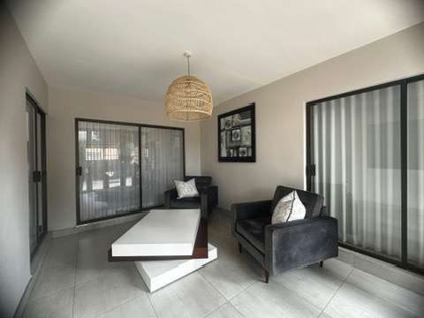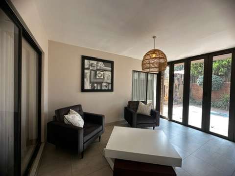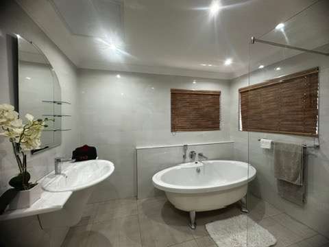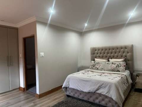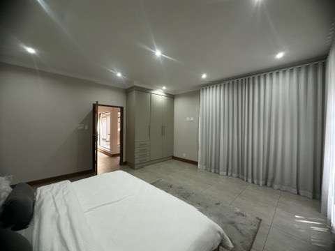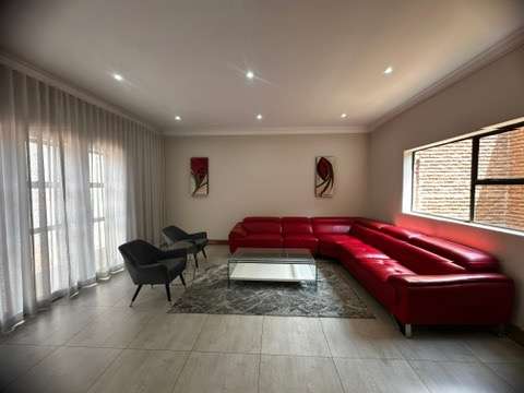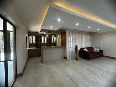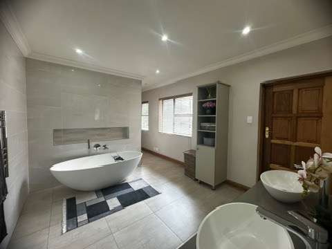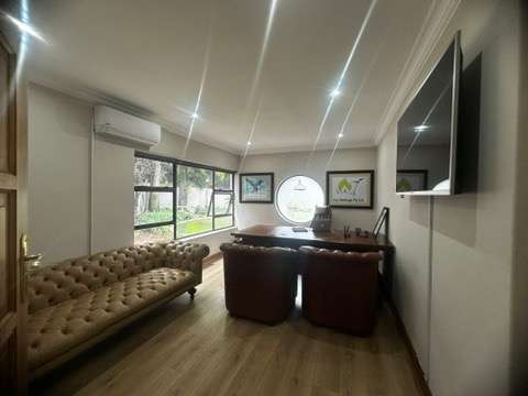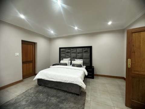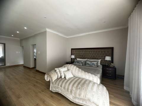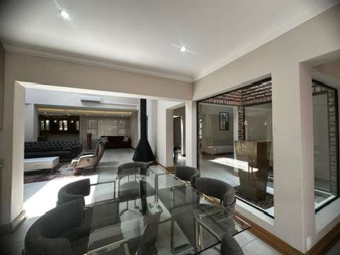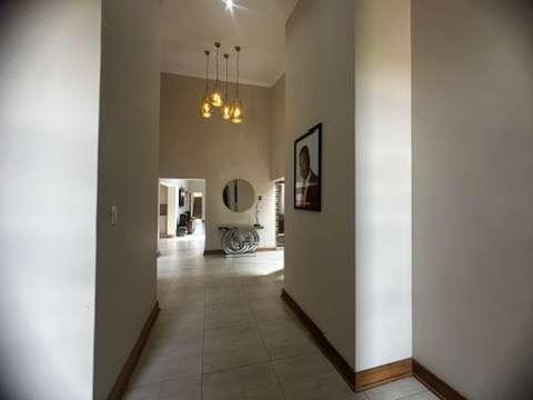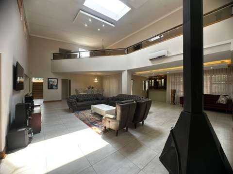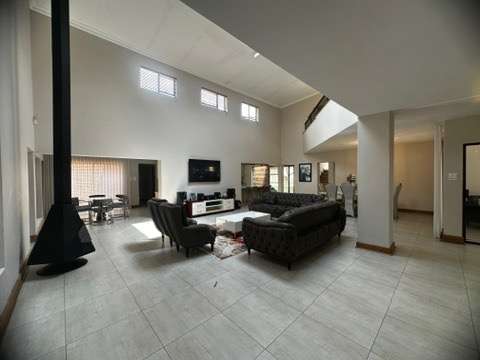 Bedrooms: 2 upstairs sharing a bathroom, 3 downstairs each with en-suite bathrooms Open-plan living space Lounge, dining room, breakfast area and bar area Study/home office Large room for working or studying Garages: Space for 6 vehicles Outside quarters with a full bathroom Large entertainment area with a built-in braai (barbecue), overlooking kids' play area and pool The property offers much more and is a must see before signing your next OTP make sure to view this magnificent home